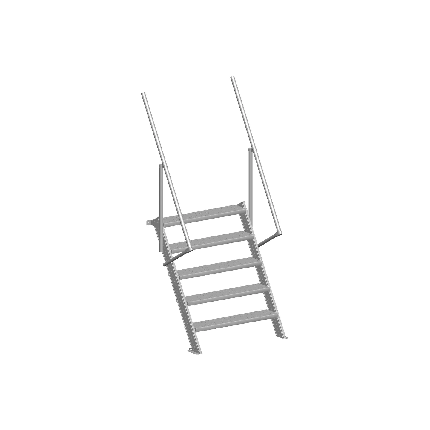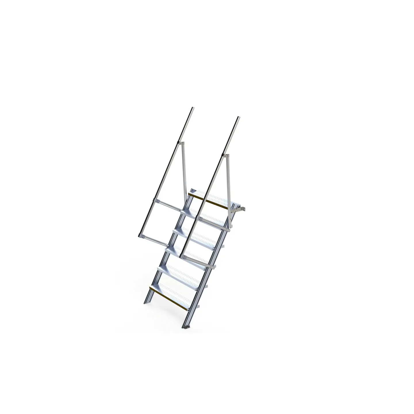 Nos escaliers industriels à inclinaison de 60 degrés, dotés d'une généreuse largeur de passage de 1000 mm, sont la réponse parfaite à vos exigences en matière d'accès sécurisé en milieu industriel. Avec leur construction robuste en aluminium résistant à la corrosion, ces escaliers assurent la sécurité et la fiabilité pour vos équipes. Muni de garde-corps à droite et à gauche choisissez parmis de plus 16 hauteurs d'escaliers disponibles de 500 mm à 4000 mm. Nous recommandons l'utilisation des escaliers industriels avec une inclinaison à 60° lorsque le passage est faible à modéré.