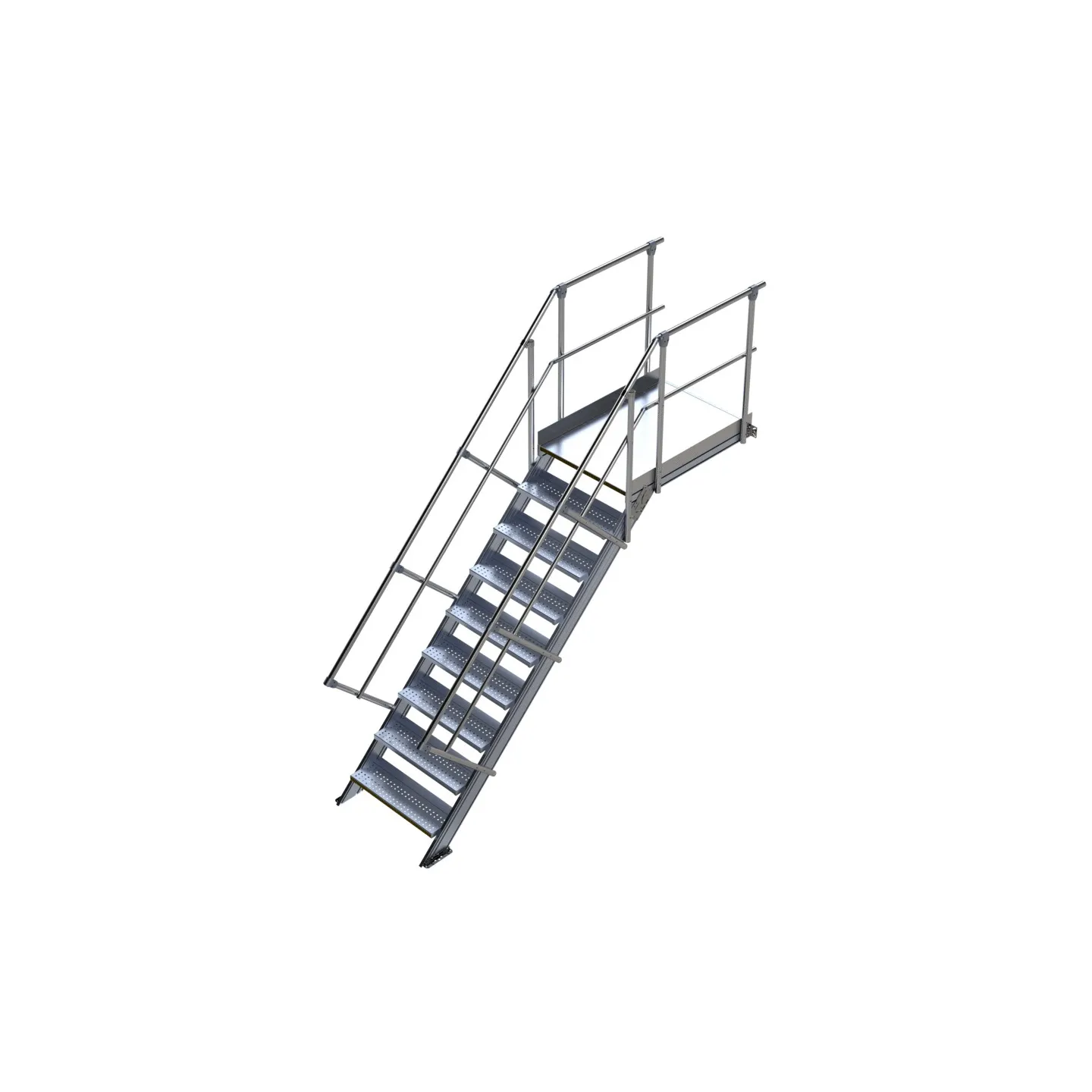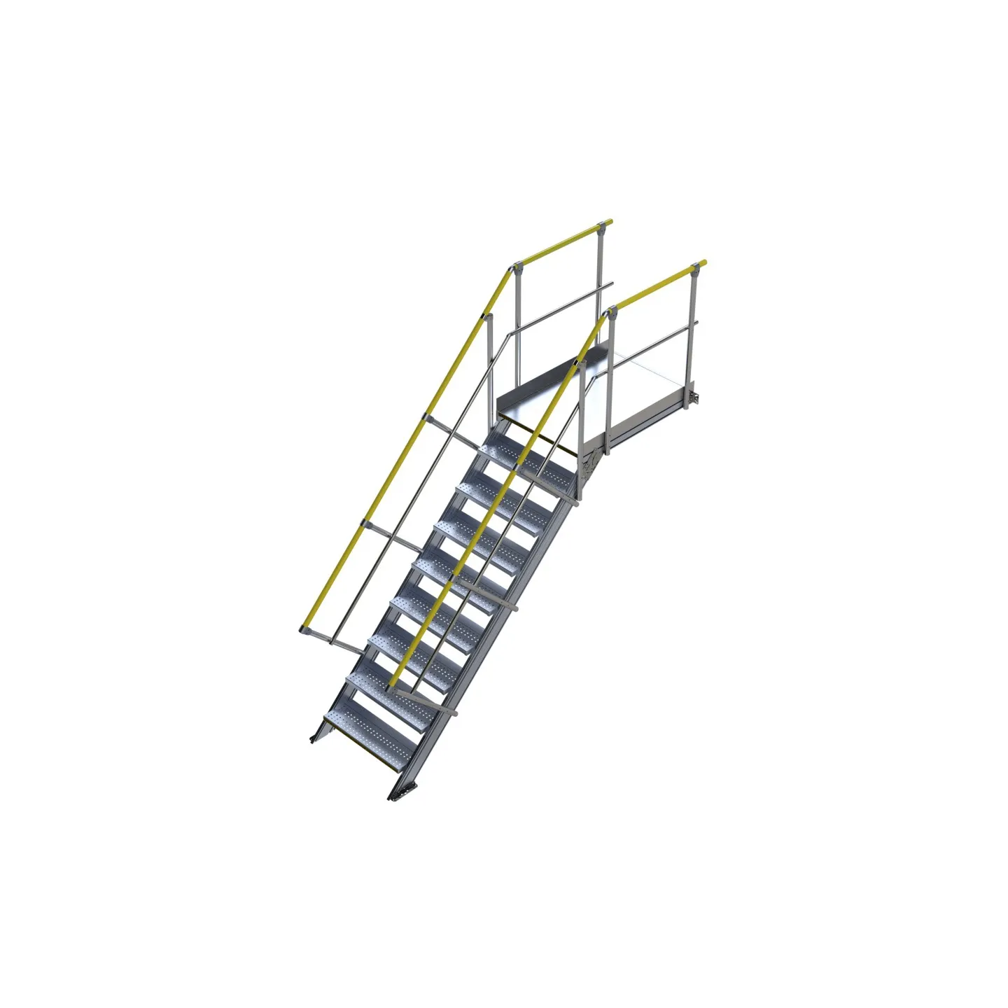 Découvrez notre gamme d'escaliers industriels à 45°, avec une largeur de passage de 800 mm pour répondre à vos besoins d'accès sécurisés en milieu industriel. Fabriqués en aluminium de haute qualité, nos escaliers avec plateforme offrent une solution fiable et durable pour vos opérations quotidiennes. Nous recommandons l'utilisation des escaliers industriels avec une inclinaison à 45° pour les usages fréquents. Muni de garde-corps à droite et à gauche choisissez parmis de plus 16 hauteurs d'escaliers disponibles de 400 mm à 3200 mm.