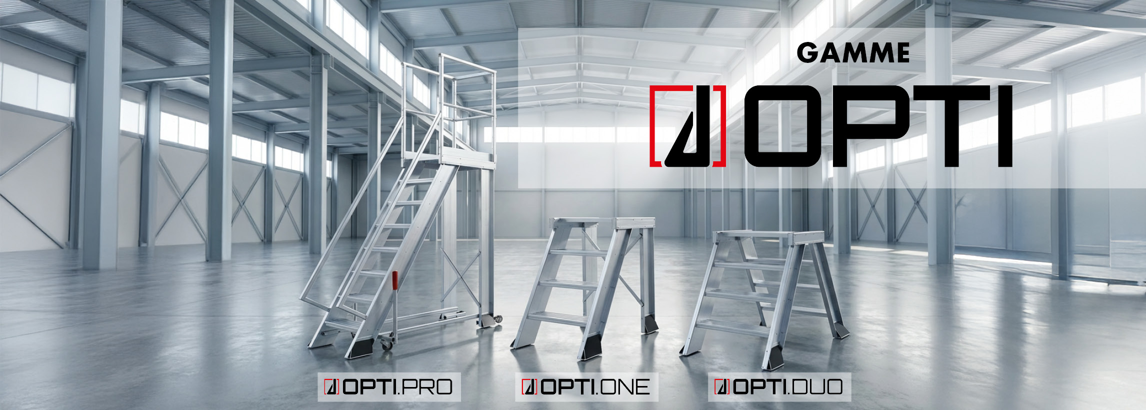 Le marchepied OPTI ONE disponible en 2, 3 et 4 marches, est conçu pour les interventions ponctuelles à faible hauteur, avec un excellent compromis entre compacité, stabilité et modularité.