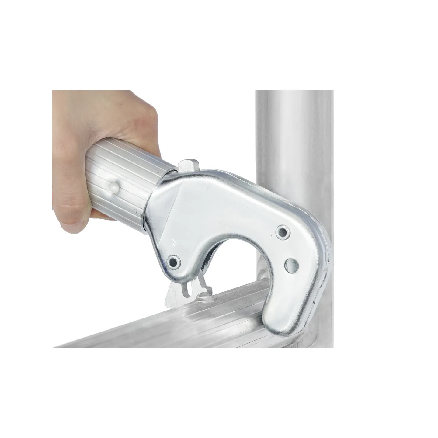 Revêtement antidérapant sur les plates-formes et le crochet de sécurité manuel pour un montage et un démontage sûrs.