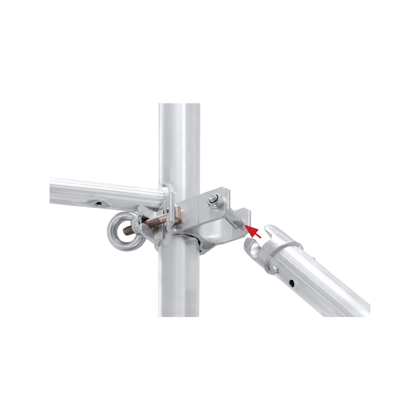 Crosse de montage incluse, permettant de suspendre et décrocher rapidement et en sécurité les diagonales et entretoises depuis le bas