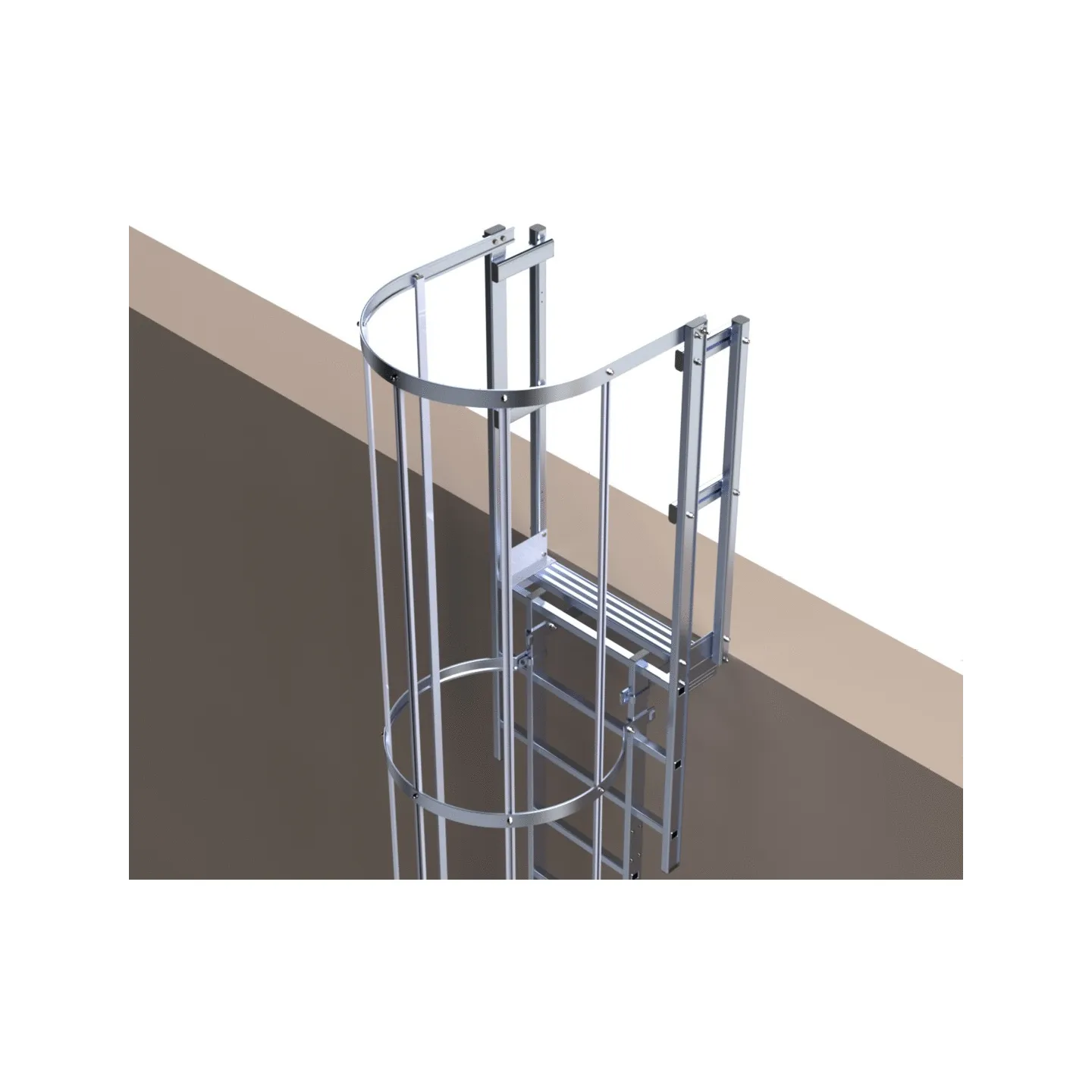 Sortie frontale pour les échelles à crinoline. Avec marche palière.