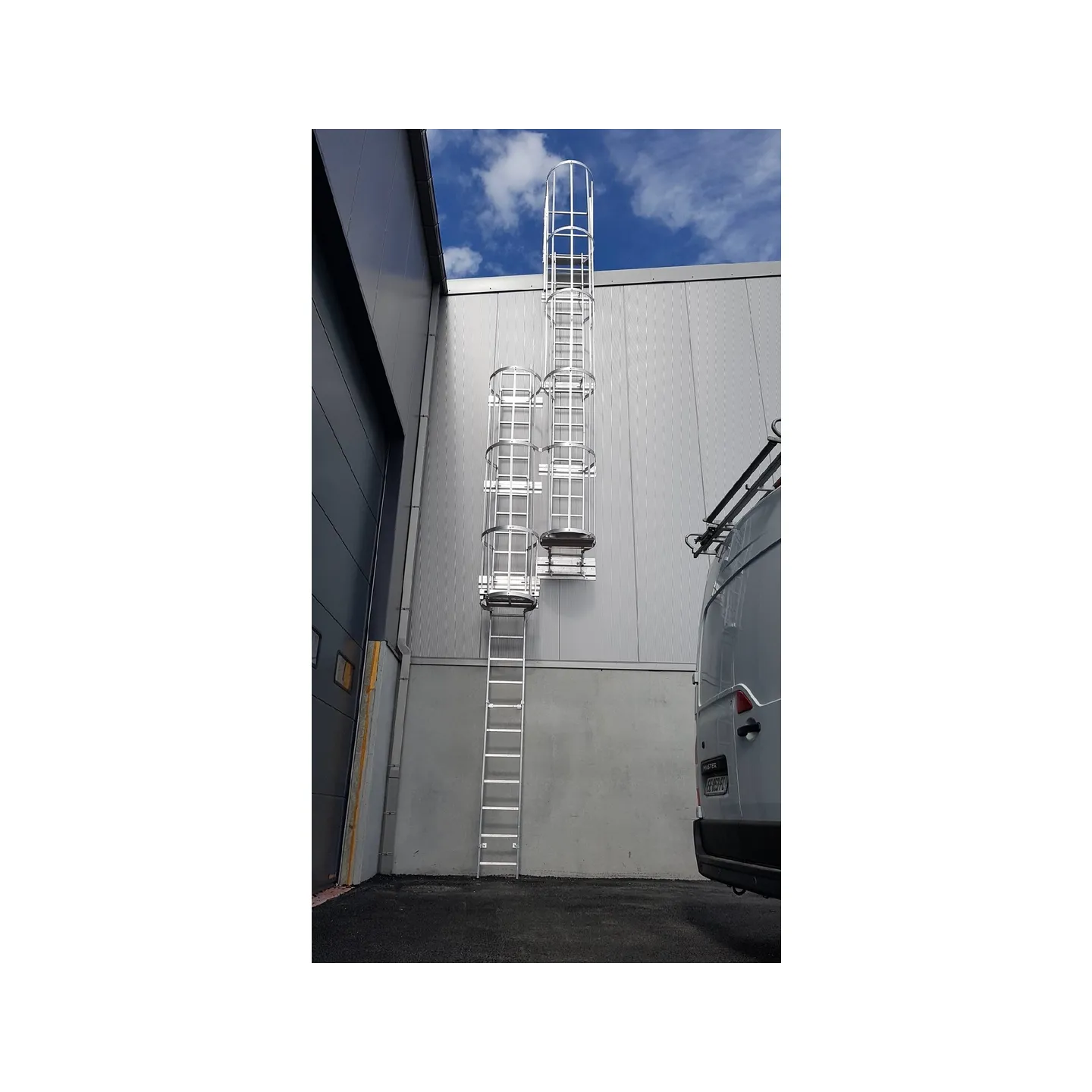 Découvrez notre échelle à crinoline, conçue entièrement en aluminium, permettant d'atteindre une hauteur de 12000 mm.