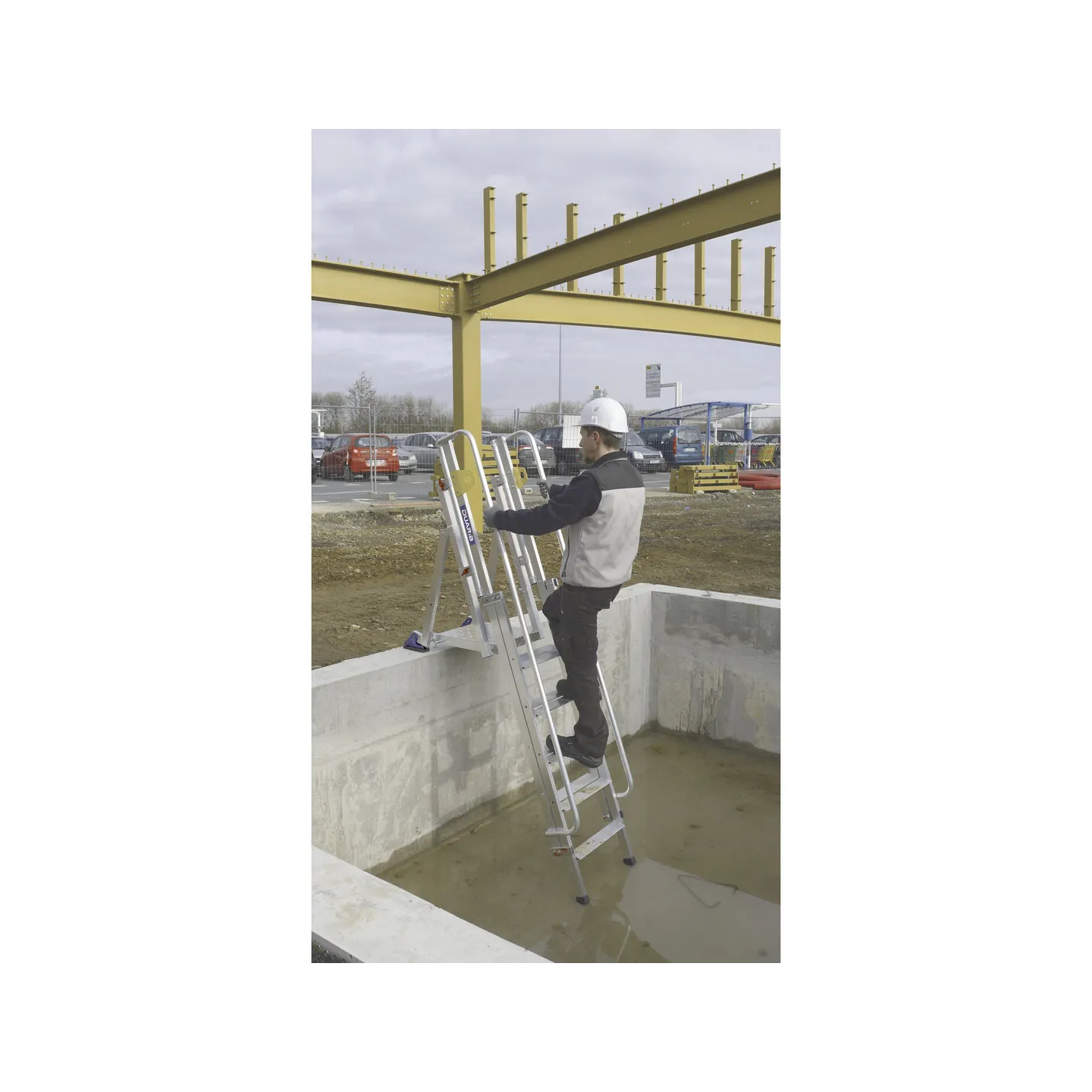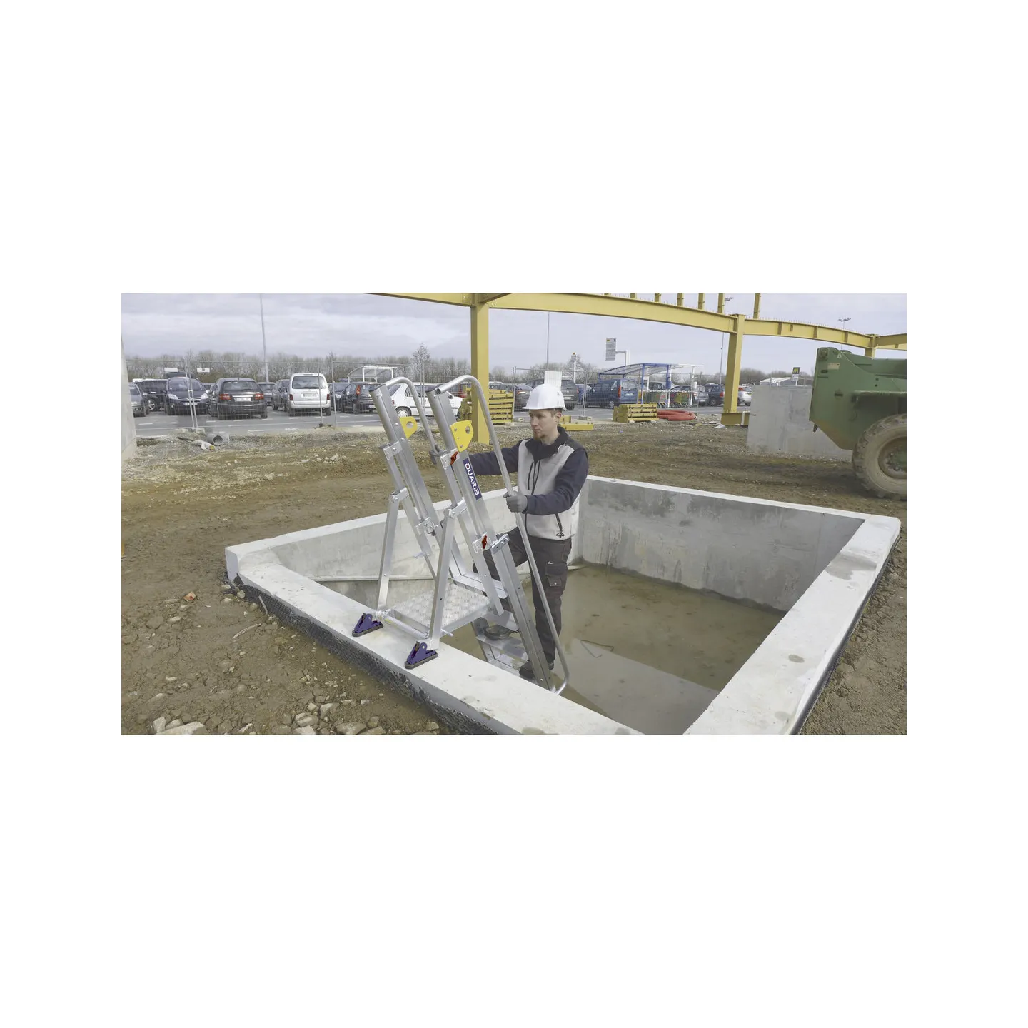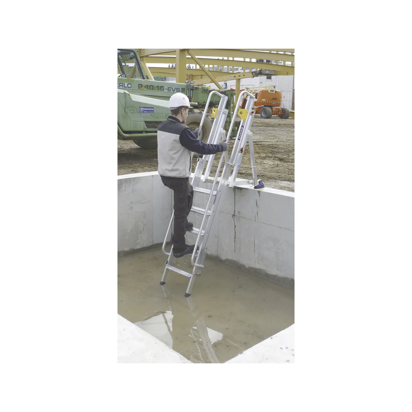 L’accès fond de fosse d’ascenseur est une solution professionnelle dédiée aux interventions en fond de fosse jusqu’à 2,30 m de profondeur. Sa structure aluminium soudée, ses marches antidérapantes, sa double main courante et sa plate-forme d’accès sécurisée garantissent une protection optimale de l’opérateur. Grâce à son dispositif anti-basculement et à ses réglages millimétriques, il s’adapte aux contraintes du chantier tout en respectant la réglementation française et le décret 2004-924.