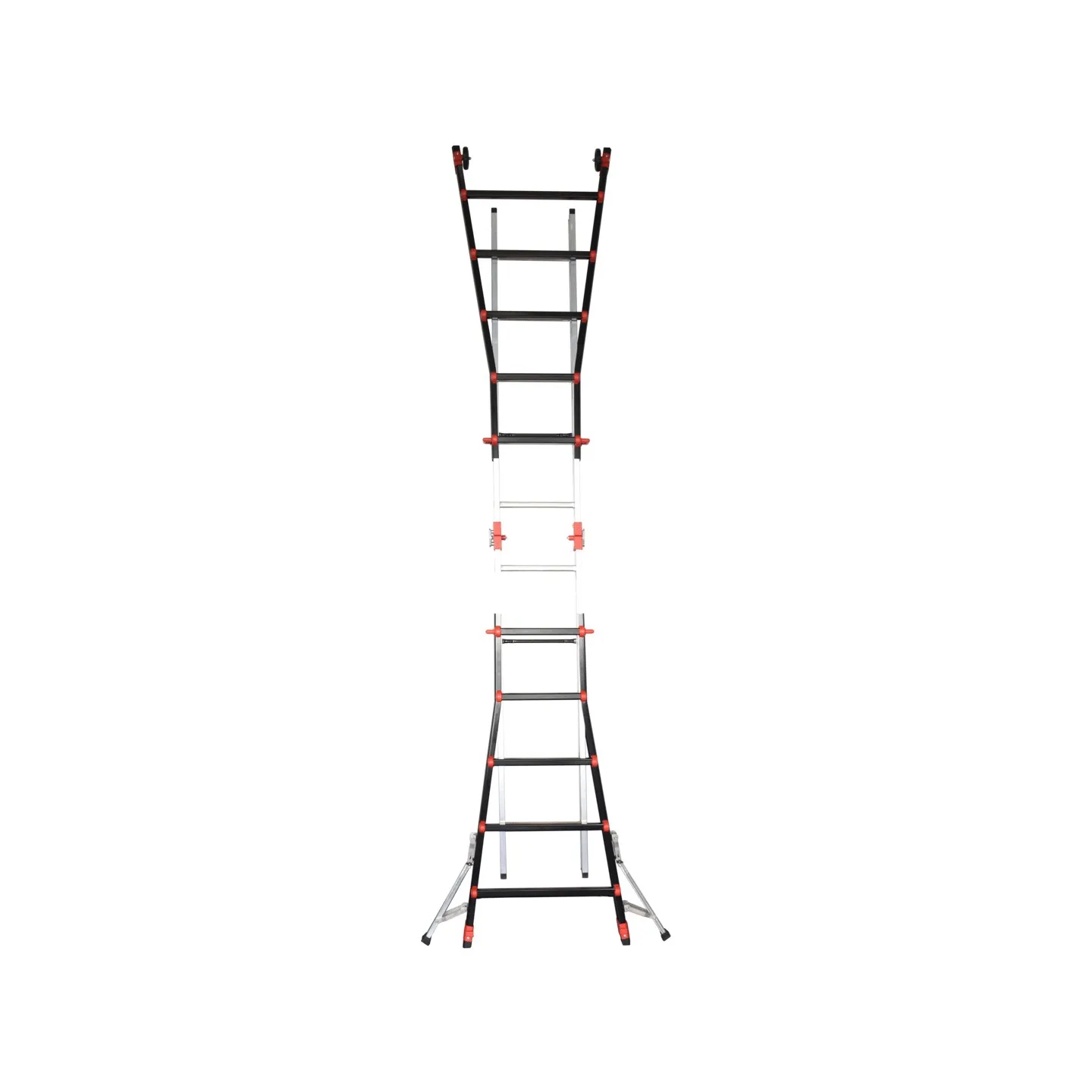 Échelle multiposition télescopique, modulable et ultra-polyvalente : elle s’adapte à toutes les situations de travail – échelle simple, déployée, double ou double en dénivelé.