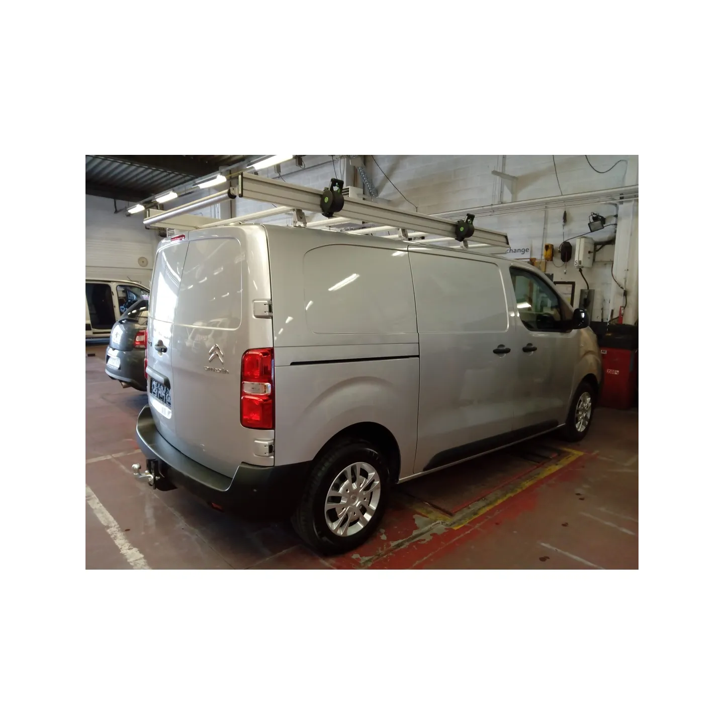 La galerie : elle permet l'accueil du boitier à sangle. Ses structures latérales sont pourvues d’un rail qui permet de positionner correctement le boitier à sangle au niveau de l’objet à arrimer. Ses différentes largeurs et longueurs permettent une adaptation parfaite à presque toutes les marques et tous les modèles de véhicules utilitaires.