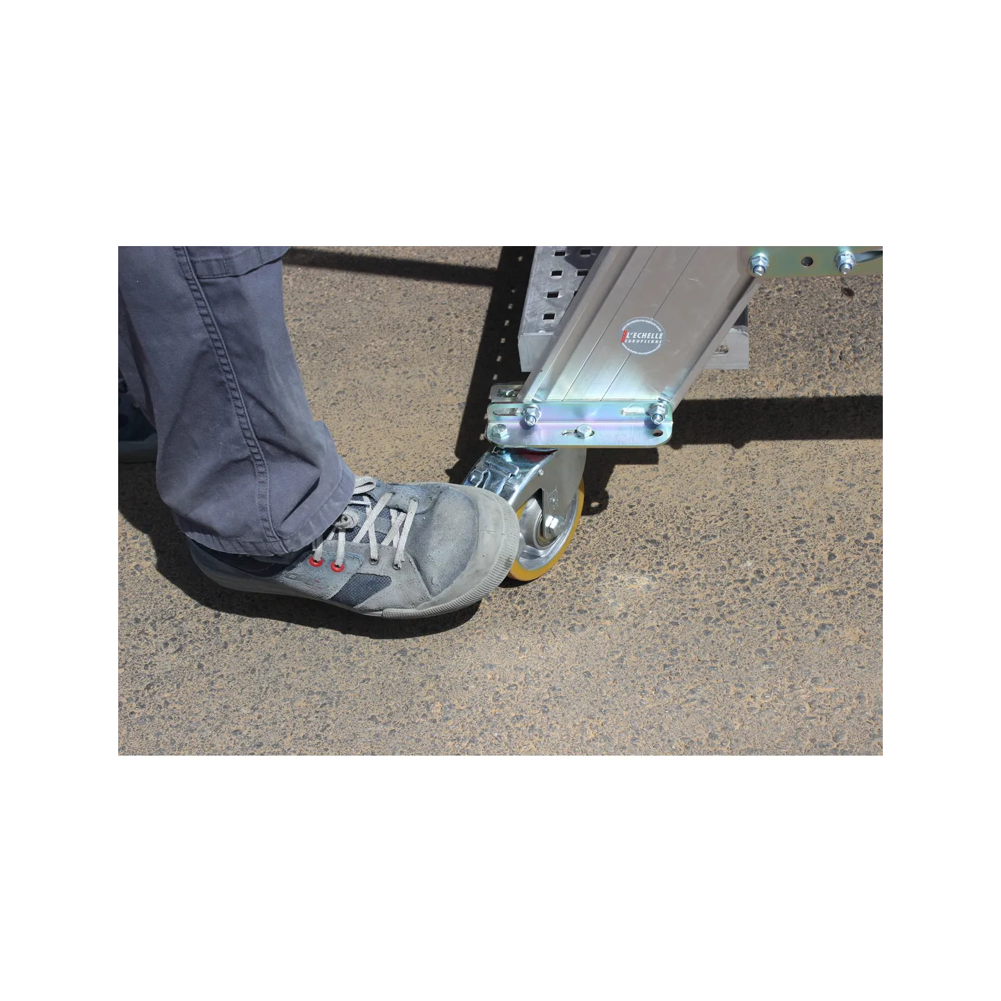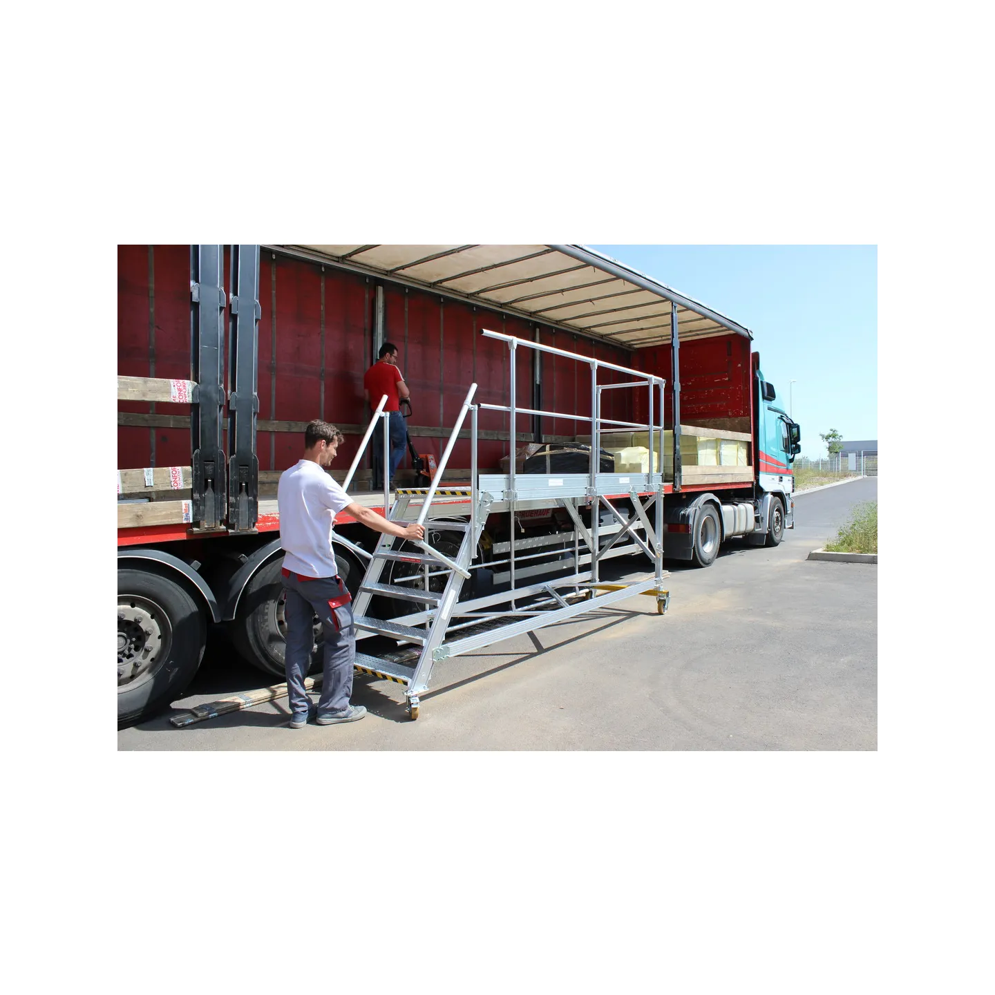 Assurez la sécurité de vos opérations de chargement et déchargement avec nos quais mobiles pour camions en aluminium, conformes aux normes EN-14122-2 et EN 14122-3. Équipés de garde-corps rabattables tout autour de la plateforme, ils offrent une sécurité totale. Leur conception permet une utilisation des deux côtés et déplacez facilement la plateforme grâce à ses roues en aluminium. Le platelage perforé LEEVELGRIP les rend adaptés à une utilisation en intérieur comme en extérieur. Inclinaison d'accès de 60° pour une accessibilité optimale.