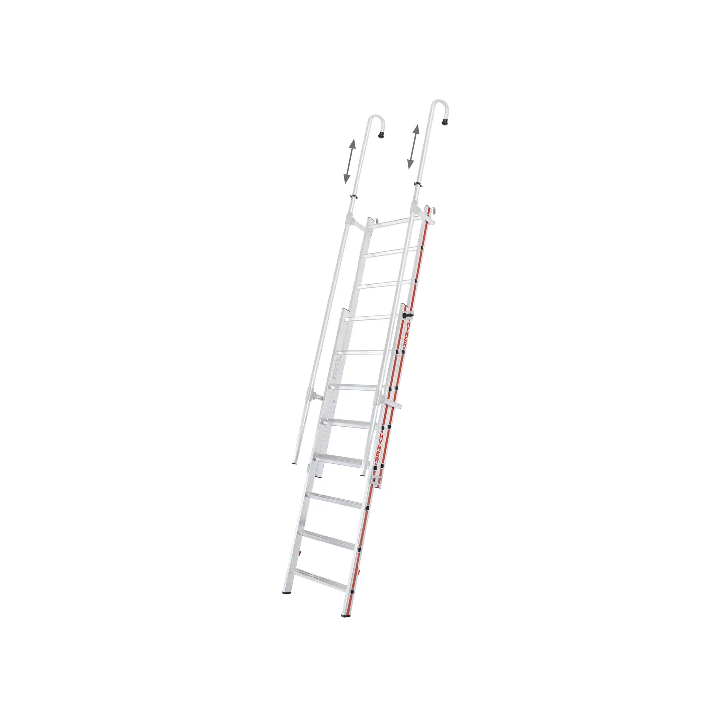 Sortie frontale sur la zone d'arrivée et aide sécurisée lors de la descente grâce à ses mains-courantes escamotables.