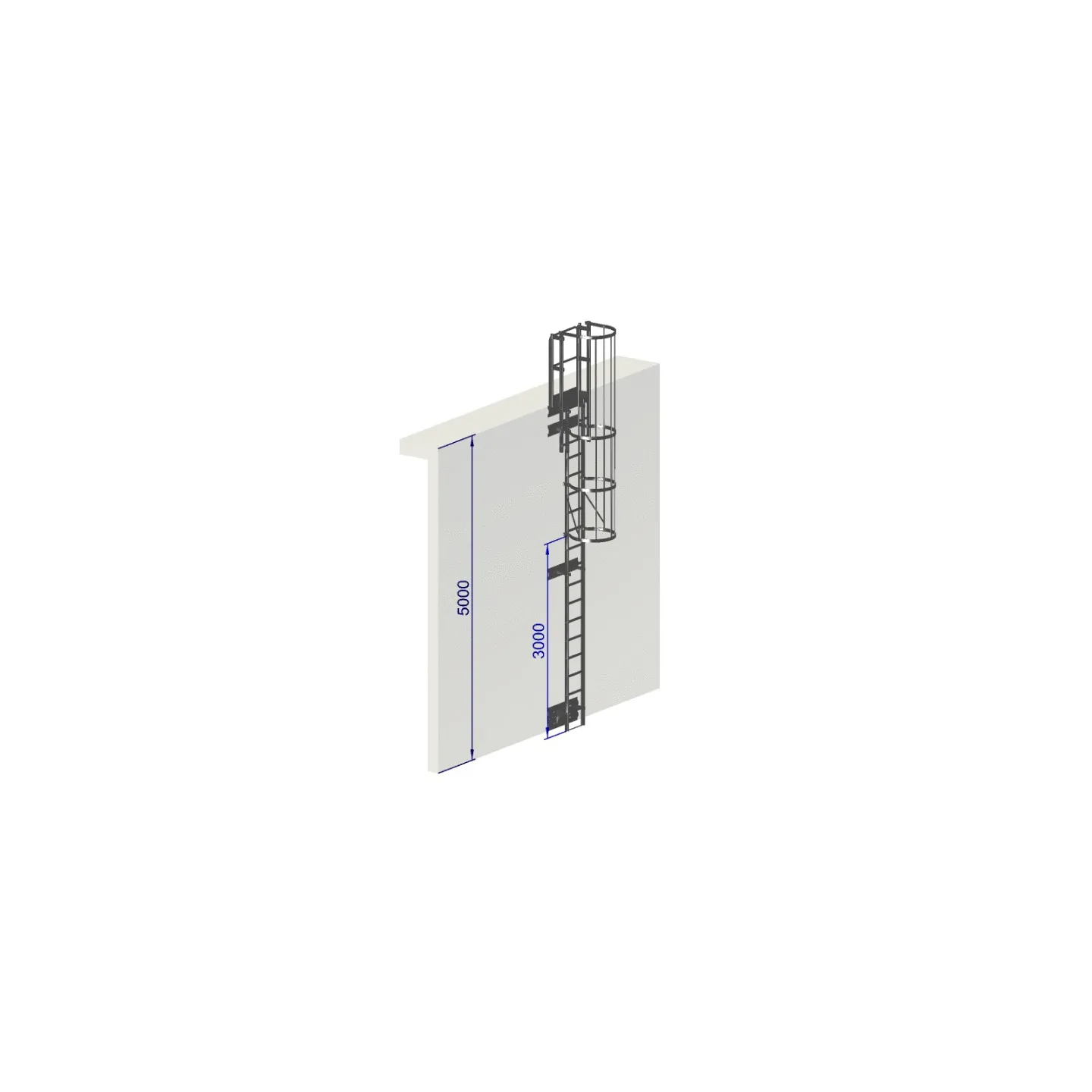 Découvrez notre échelle à crinoline, conçue entièrement en aluminium, permettant d'atteindre une hauteur de 5000 mm. Kit complet pour un accès sécurisé à 5 mètres de hauteur avec une fixation spécifiques sur bardage