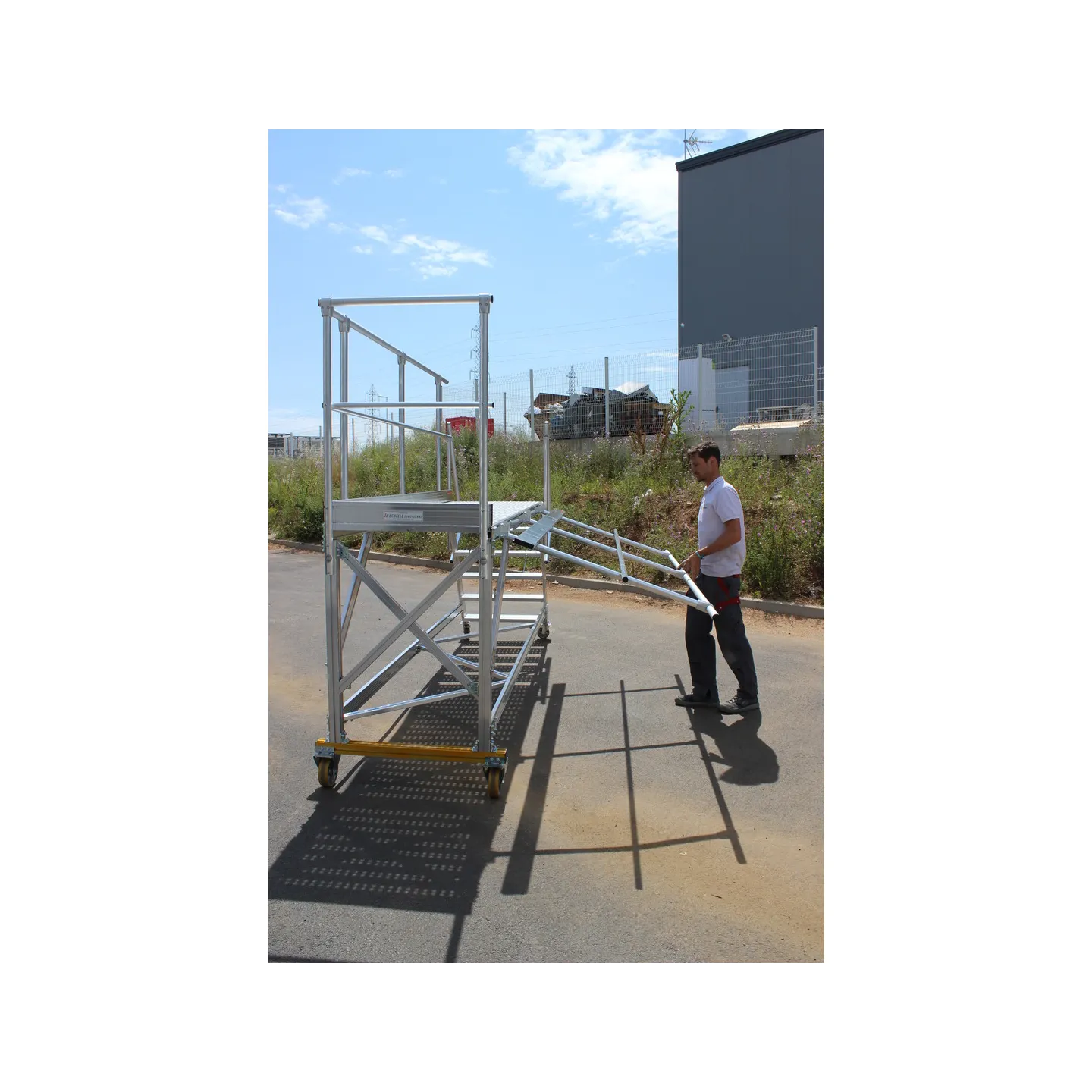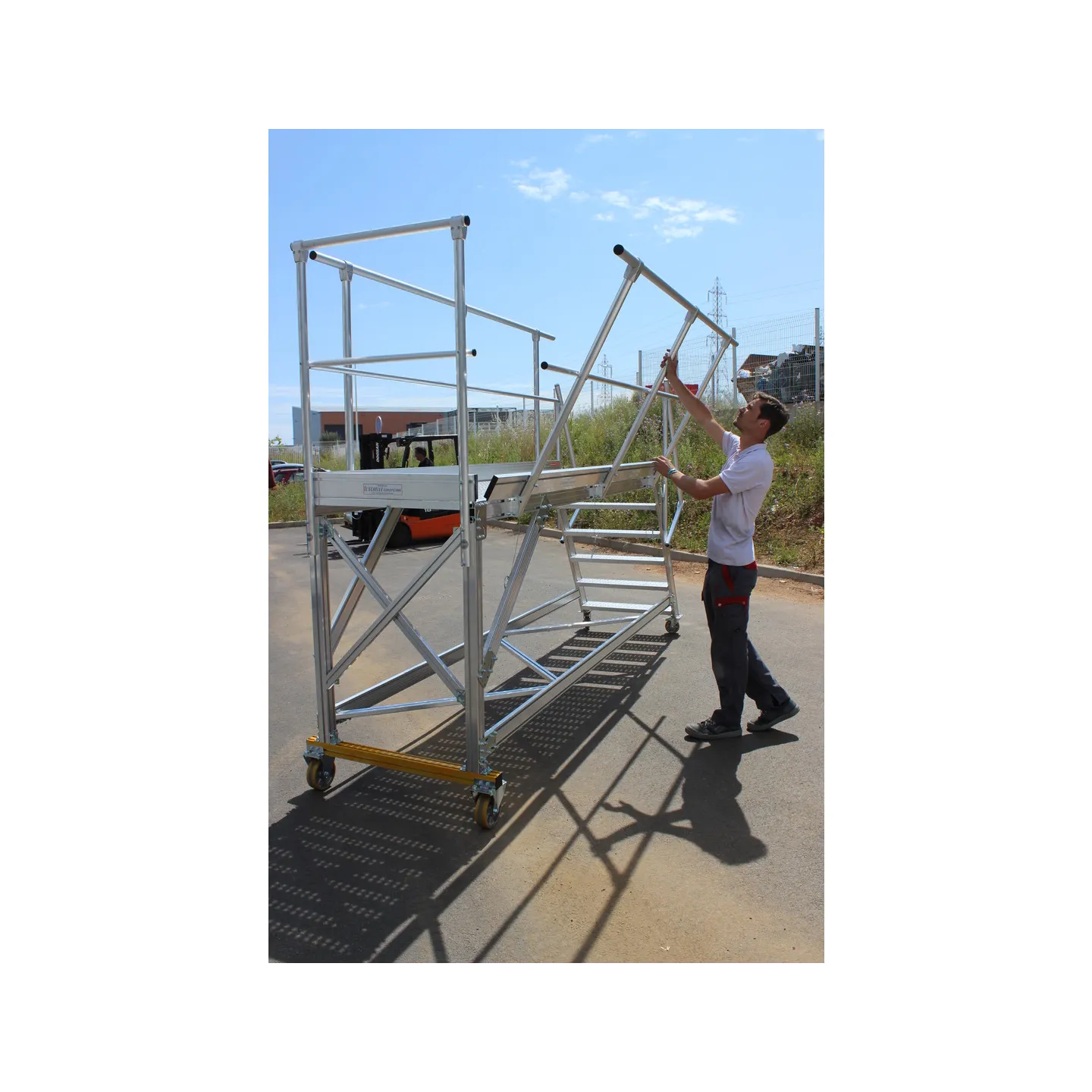 Optez pour la sécurité et la polyvalence avec nos quais mobiles de déchargement pour camions en aluminium, conformes aux normes EN-14122-2 et EN 14122-3. Dotés de garde-corps tout autour de la plateforme, ils assurent une sécurité maximale lors des opérations de chargement et déchargement. Leur conception permet une utilisation des deux côtés grâce aux garde-corps rabattables. Simplifiez les déplacements à l'aide des roues avant et arrière en aluminium. Le platelage perforé LEEVELGRIP les rend adaptés à une utilisation en intérieur comme en extérieur. Inclinaison d'accès de 60° pour une accessibilité optimale.