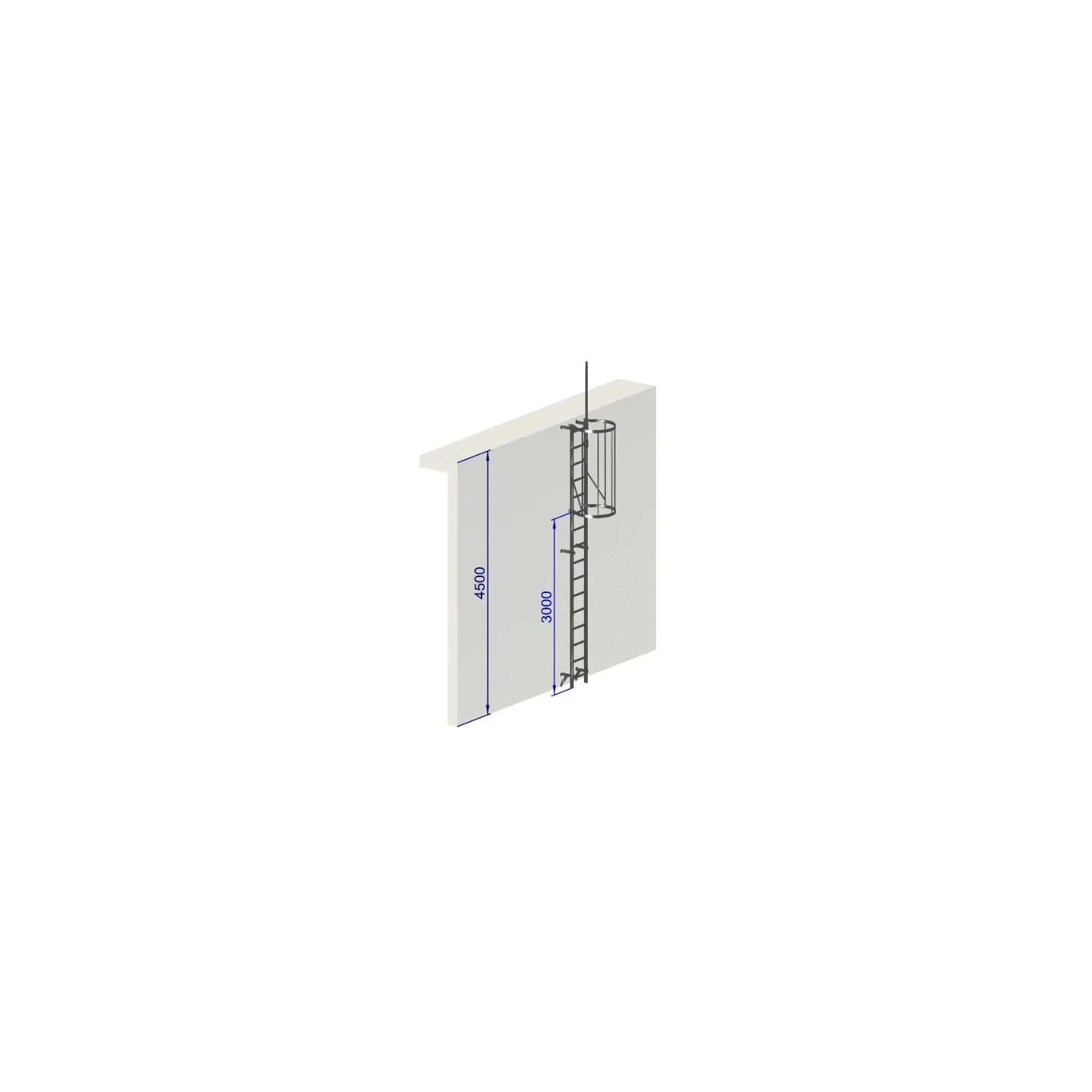 Échelle à crinoline hauteur 4500 mm avec crosse de sortie escamotable EN ISO 14122-4