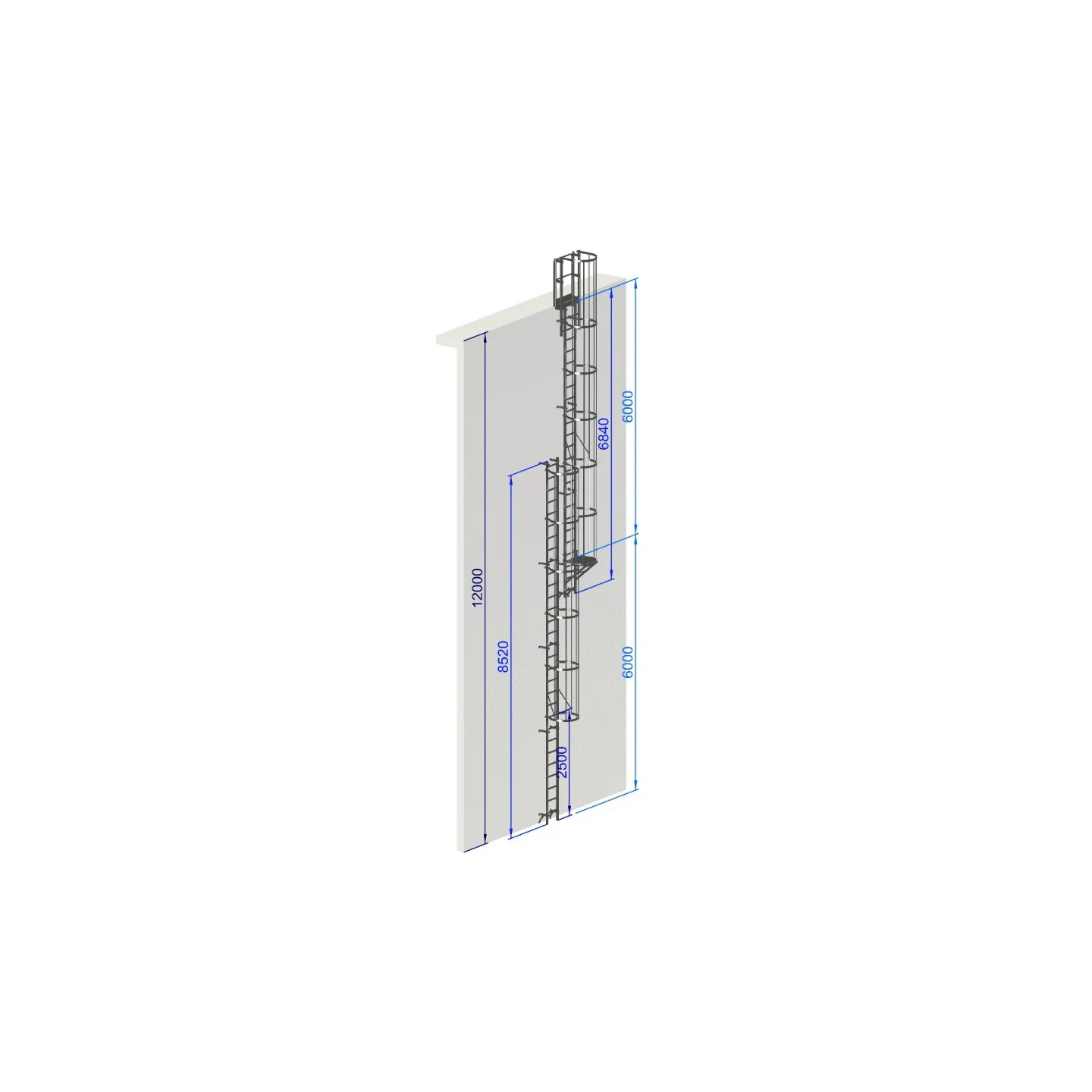 Découvrez notre échelle à crinoline, conçue entièrement en aluminium, permettant d'atteindre une hauteur de 12 000 mm.