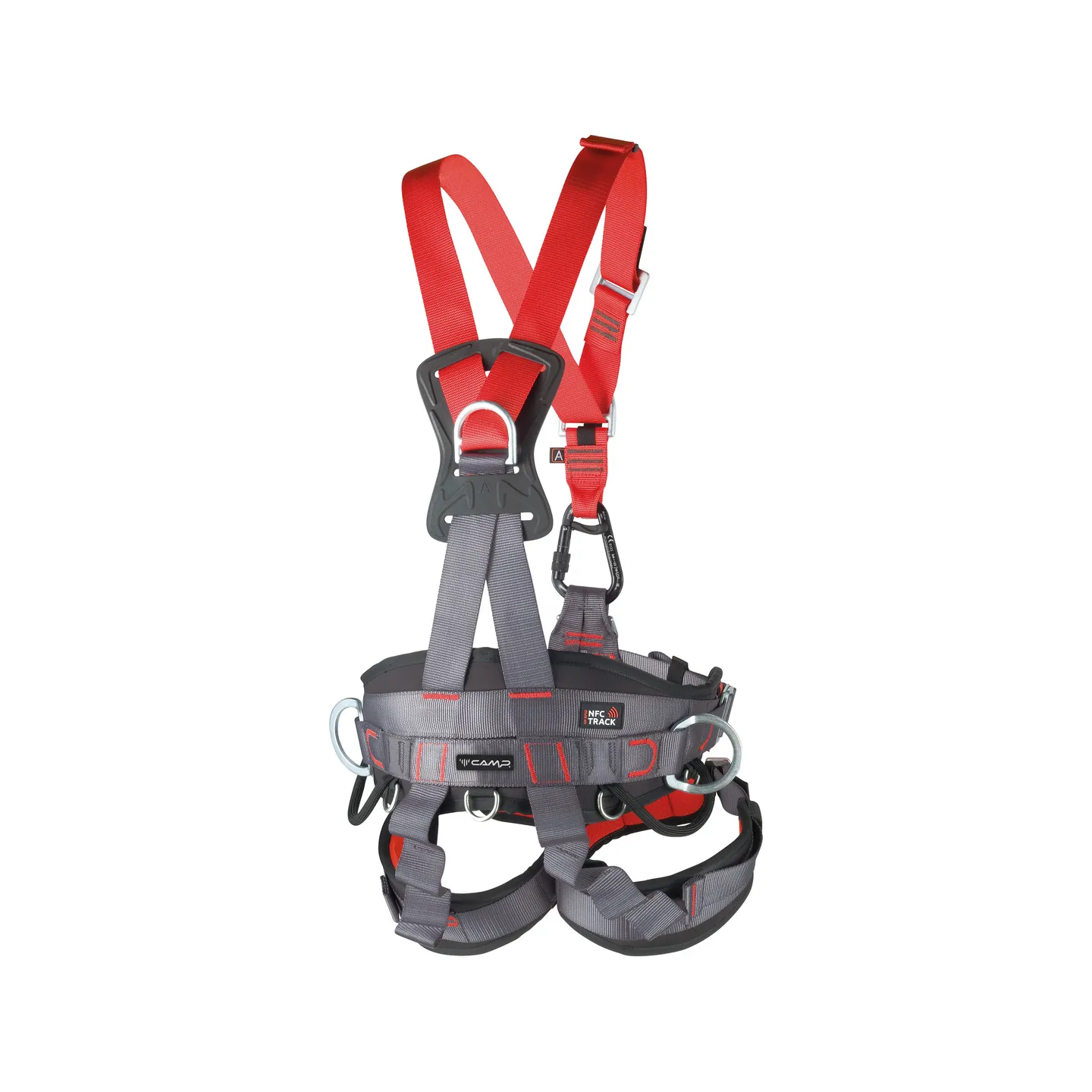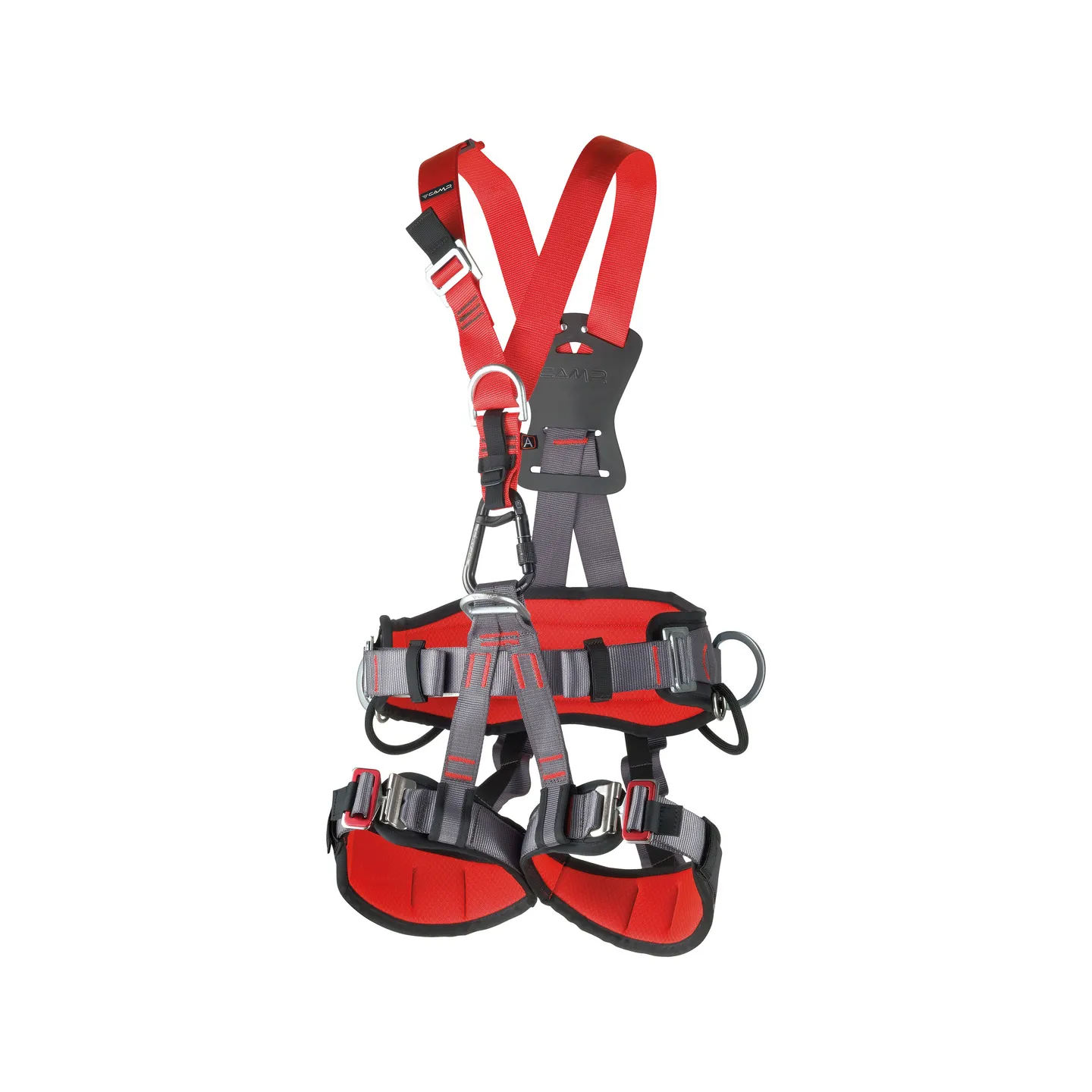 Harnais complet d’une structure de construction minimaliste qui offre pourtant les caractéristiques fonctionnelles des modèles d'accès sur corde les plus avancés : en bref, le best seller des harnais pour la suspension et le maintien au travail de la gamme C.A.M.P.