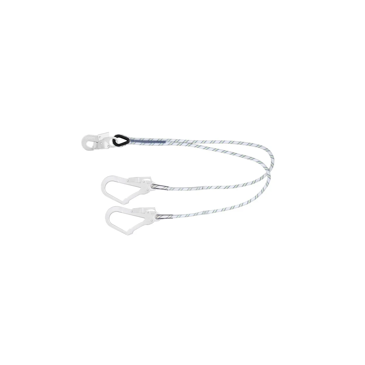 Mousquetons : 1 mousqueton acier à verrouillage automatique à une extrémité et 2 mousquetons d'échafaudage à verrouillage automatique aux autres extrémités.