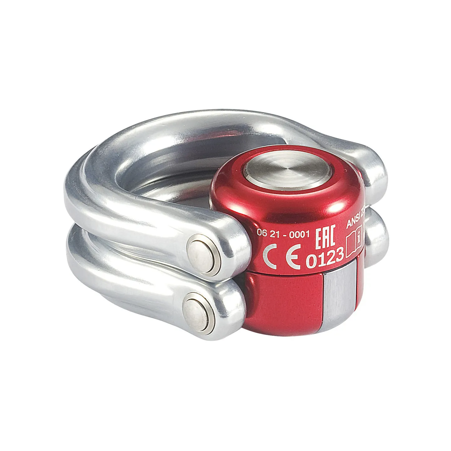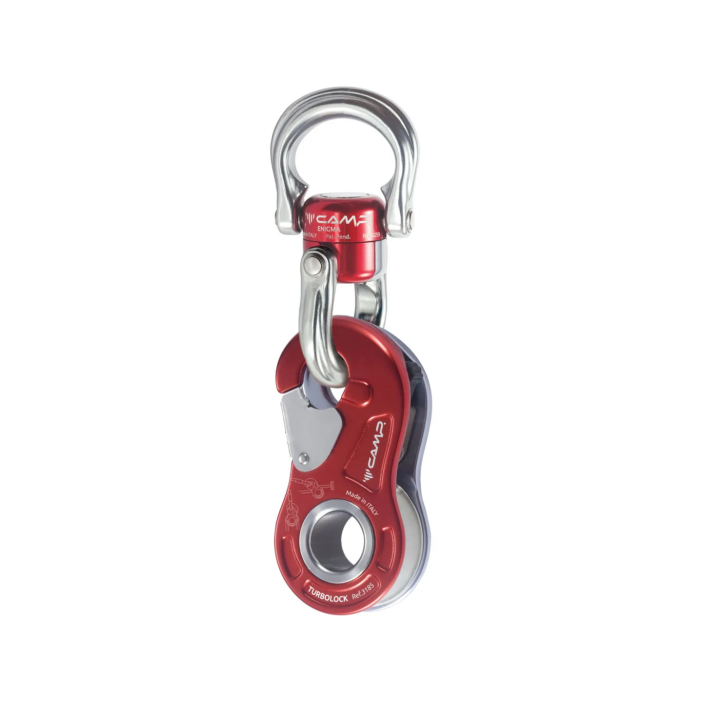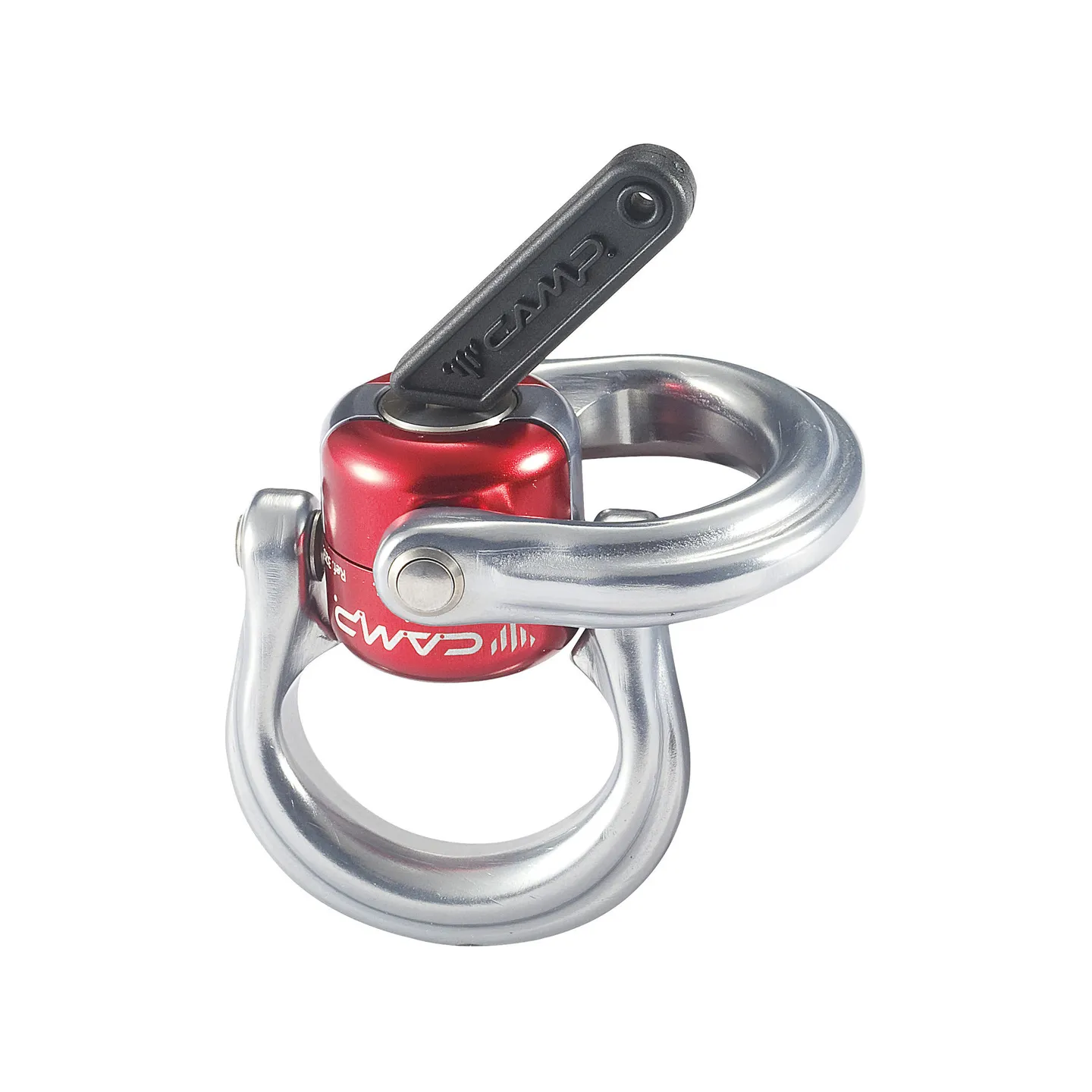 L’Enigma est un dispositif pivotant entièrement ouvrable équipé de grands anneaux basculants qui permettent la connexion directe de composants métalliques et textiles sans l'aide de mousquetons.