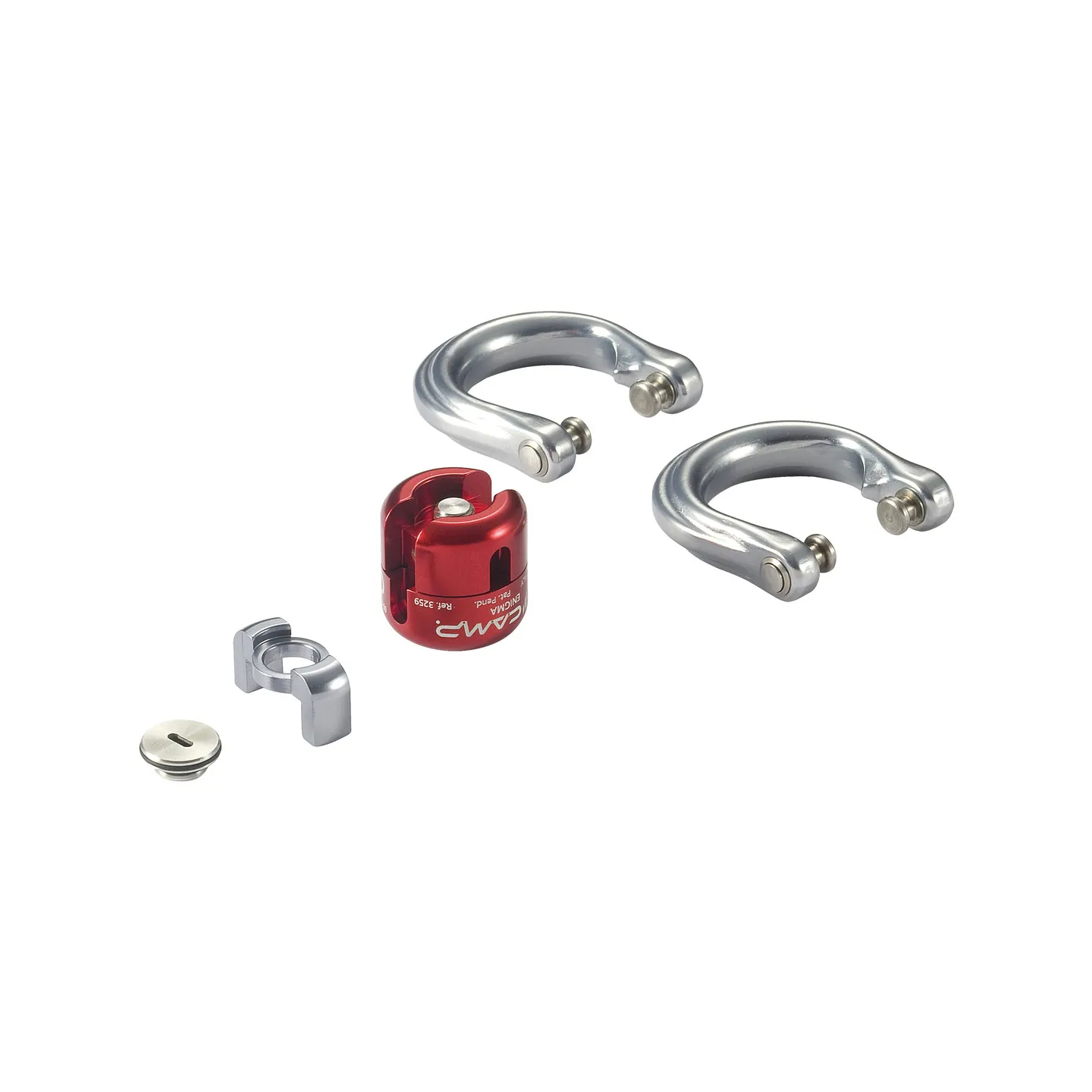 La conception innovante permet l'ouverture des deux anneaux au moyen d'une seule vis la clé spéciale est fournie dans l'emballage. Le système de verrouillage de sécurité est indépendant et opposé au sens de travail du dispositif, assurant ainsi un montage facile et sûr.