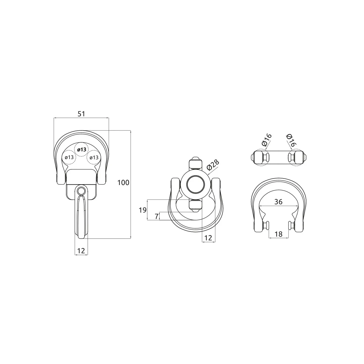 Les deux anneaux se caractérisent par une grande ouverture 18 mm et un grand logement interne pour permettre la connexion de plusieurs dispositifs en même temps.