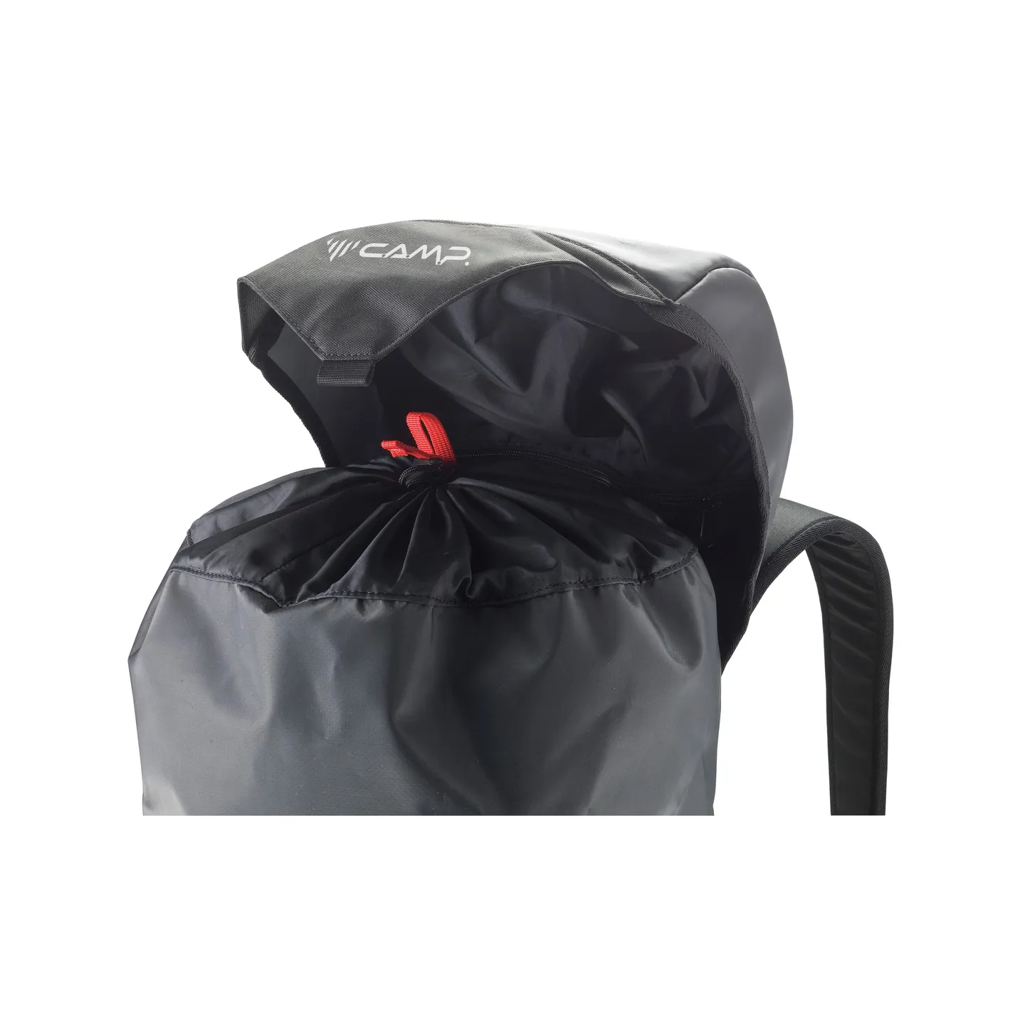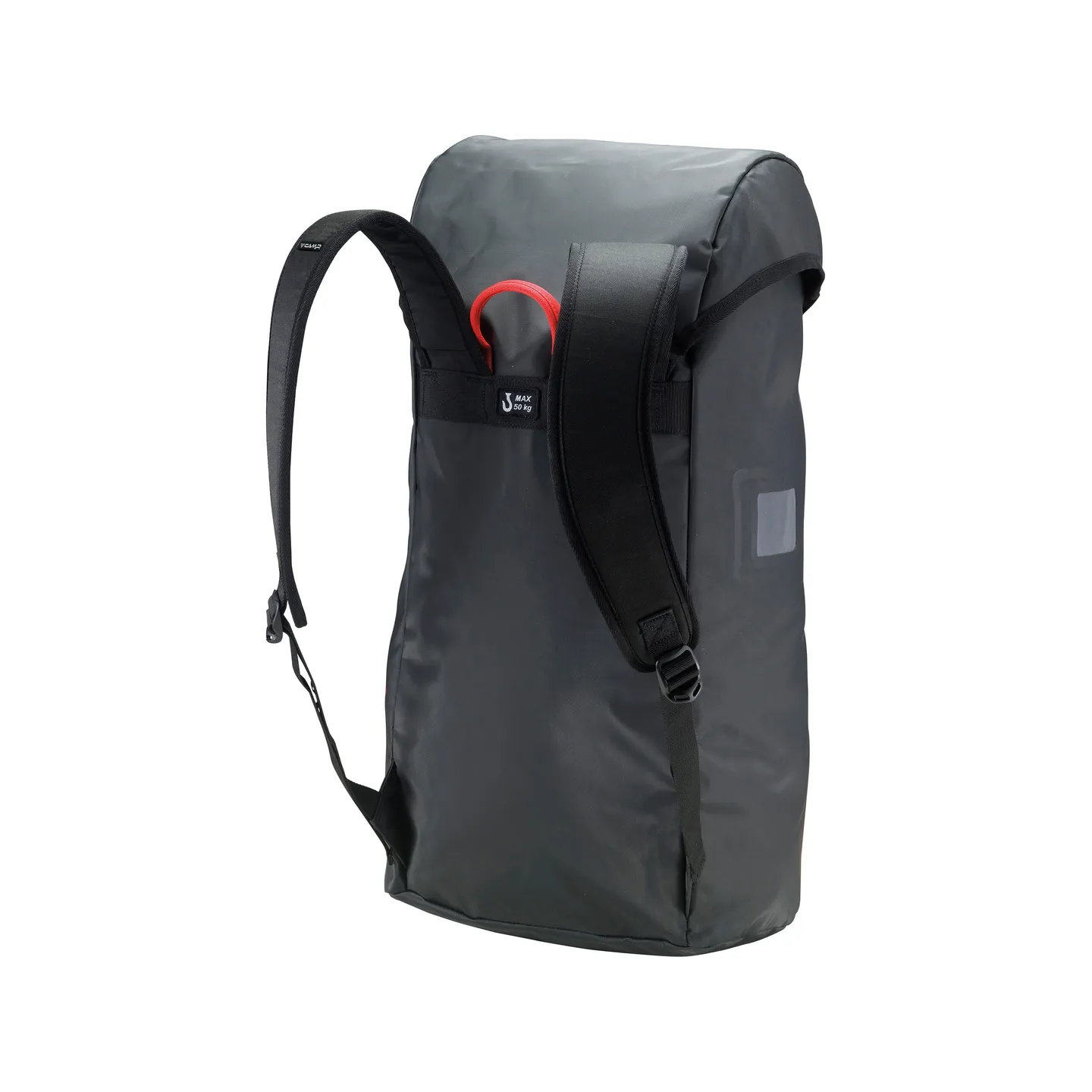 Capuchon avec poche intérieure. Fermeture externe avec boucle crochet et interne avec bloqueur de cordon. Brettelles rembourrées. Porte-étiquette transparente. Boucles internes pour la corde. Poignée de levage garantie pour des charges jusqu'à 50 kg.