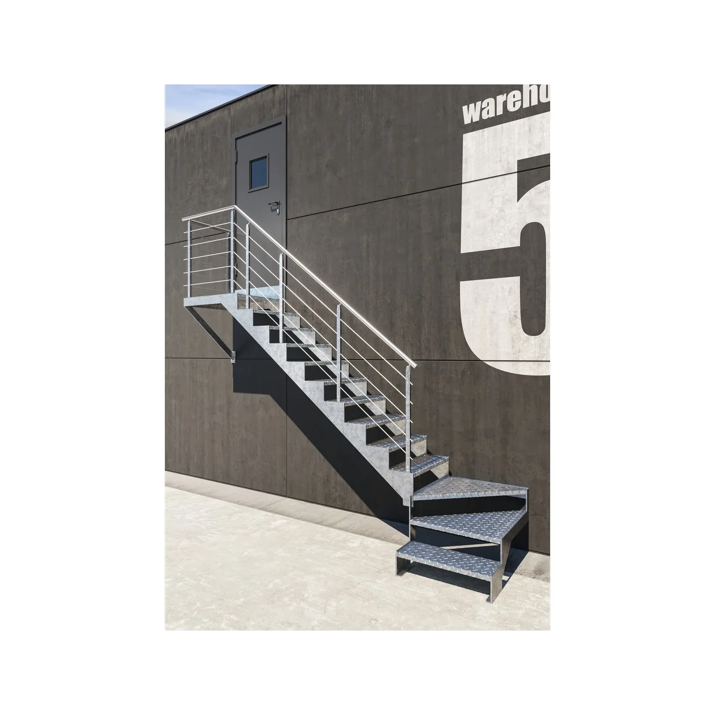 Cet escalier fonctionnel et idéal pour l'extérieur est mis à votre disposition par L'Échelle Européenne. Pour une finition plus déco vous pouvez thermolaquer l'ensemble de l'escalier suivant le coloris RAL de votre choix.