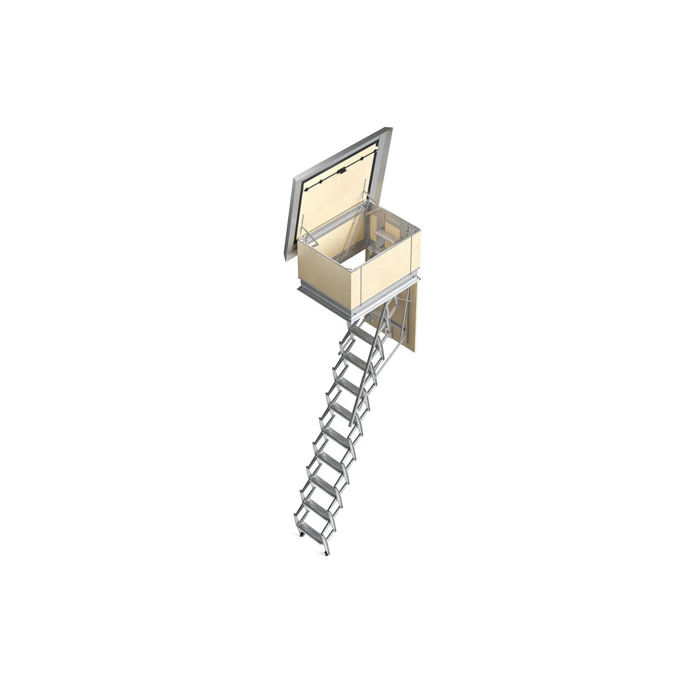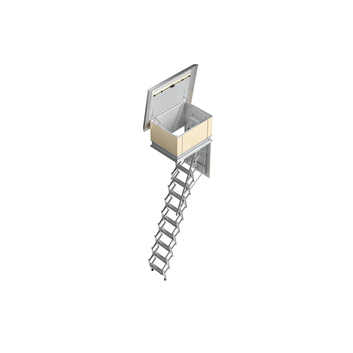 L'escalier escamotable accordéon Terrace, prévu comme son nom l'identique pour les accès terrasse est composé de 11 marches en tôle d'acier embouti zingué.