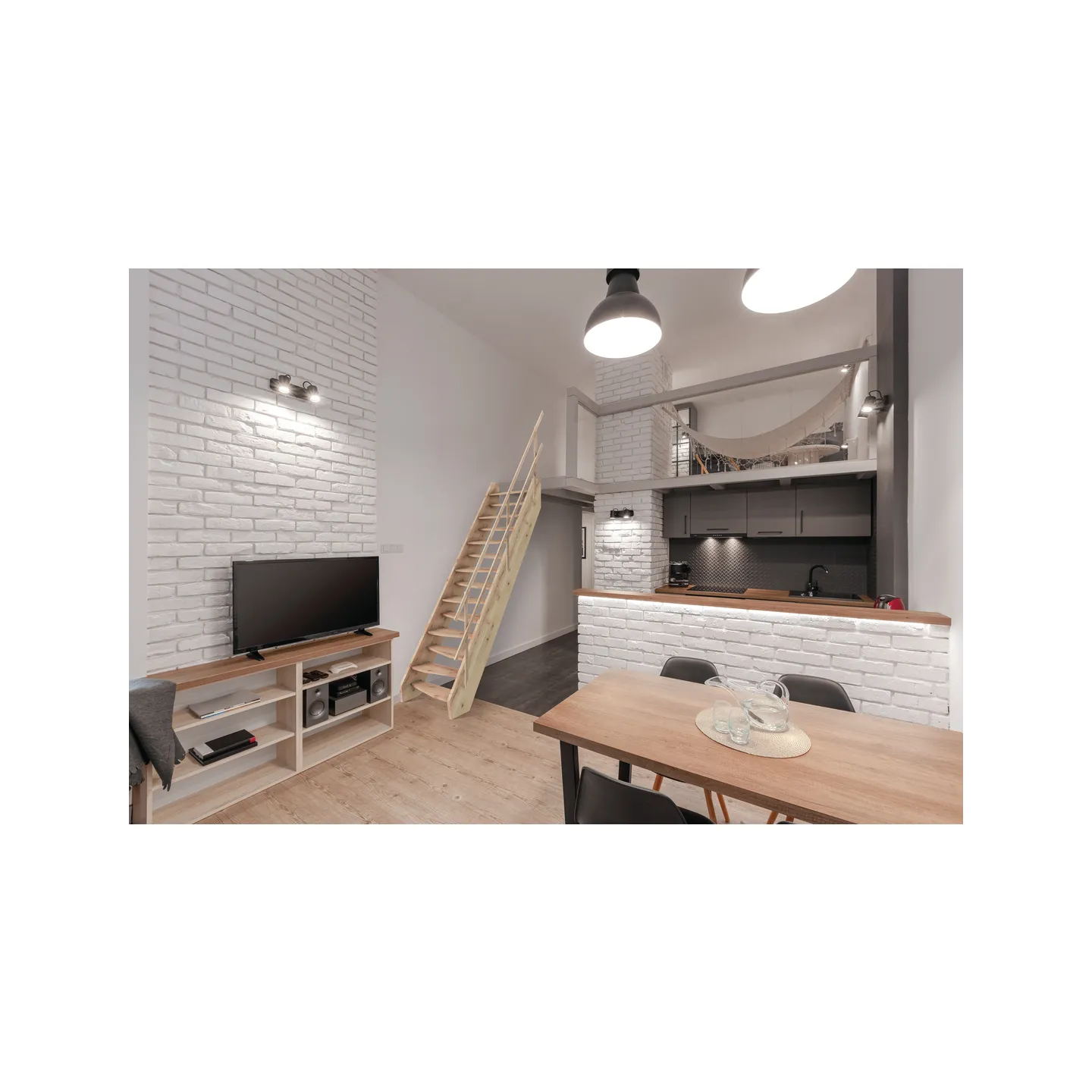 À mi-chemin entre le modèle "classique" et une échelle de meunier à barreaux, elle offre un confort minimal grâce à ses marches à découpe asymétrique.