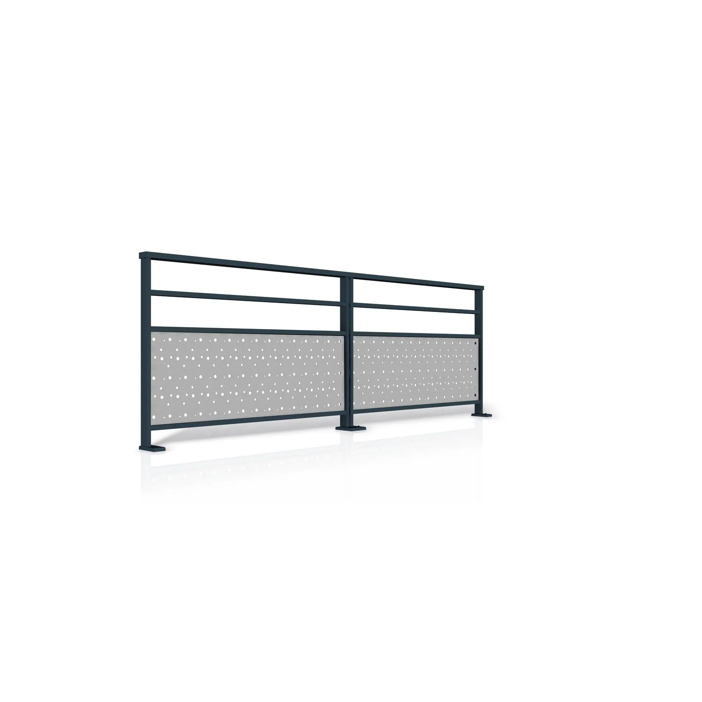Avec sa pose simple et rapide, le garde-corps AMELITE est réalisé avec une main courante rectangulaire et une lisse intermédiaire.