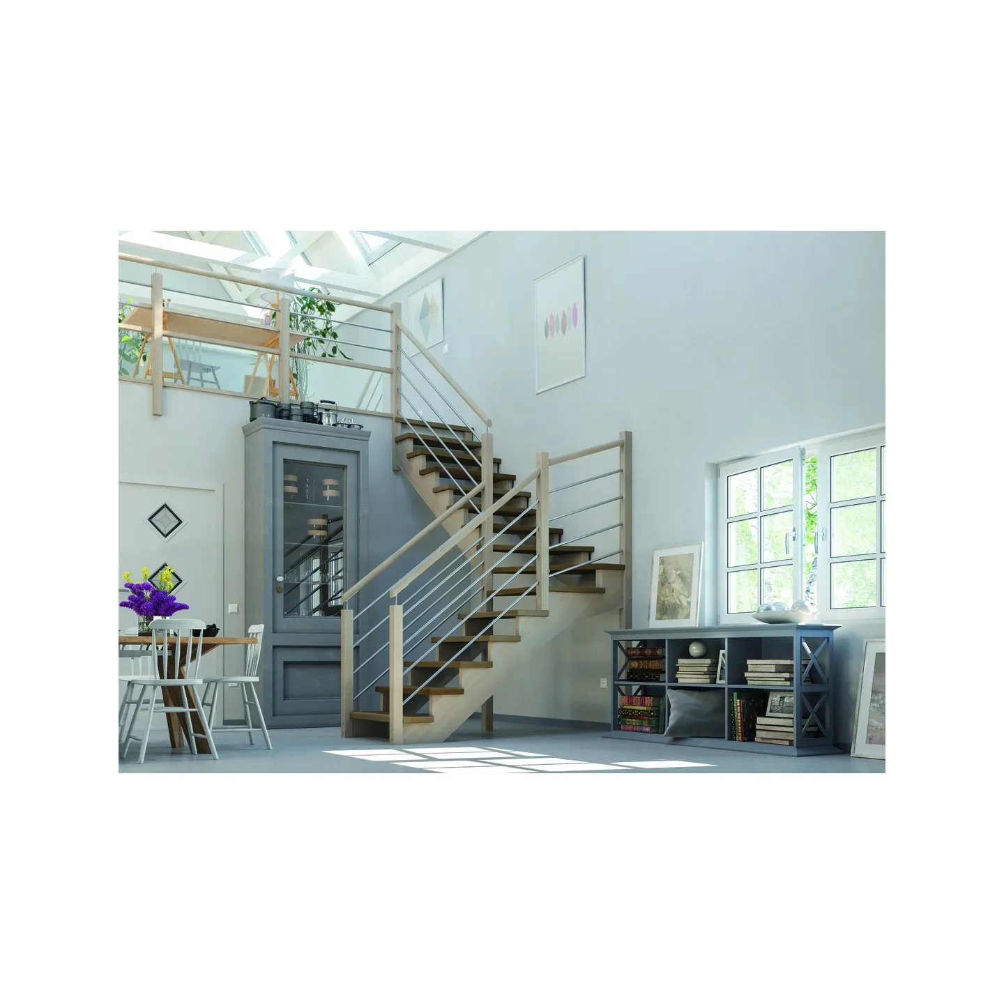 Composée de lisses en métal, cet escalier à l'anglaise s'adaptera à tout type d'intérieur.