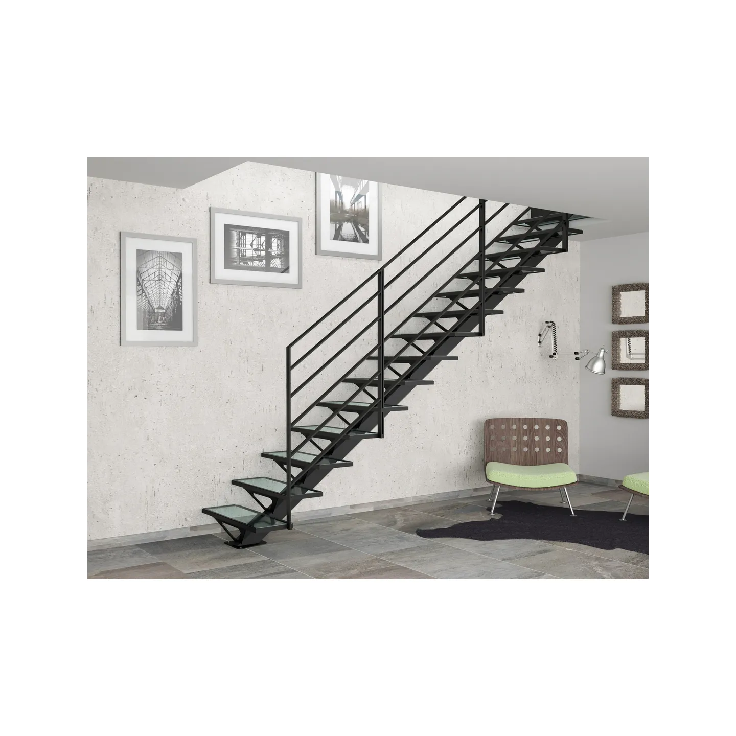 Marches en verre stratifié 8+8 mm montées sur cadre en acier avec support métallique soudé triangulaire