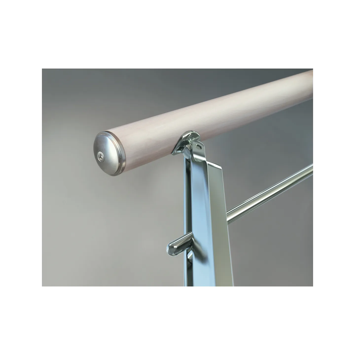 Main-courante en acier Ø 35 mm en inox brillant ou satiné ou en hêtre
