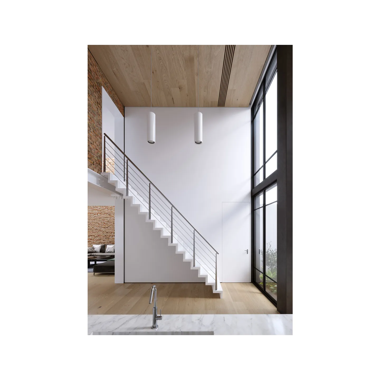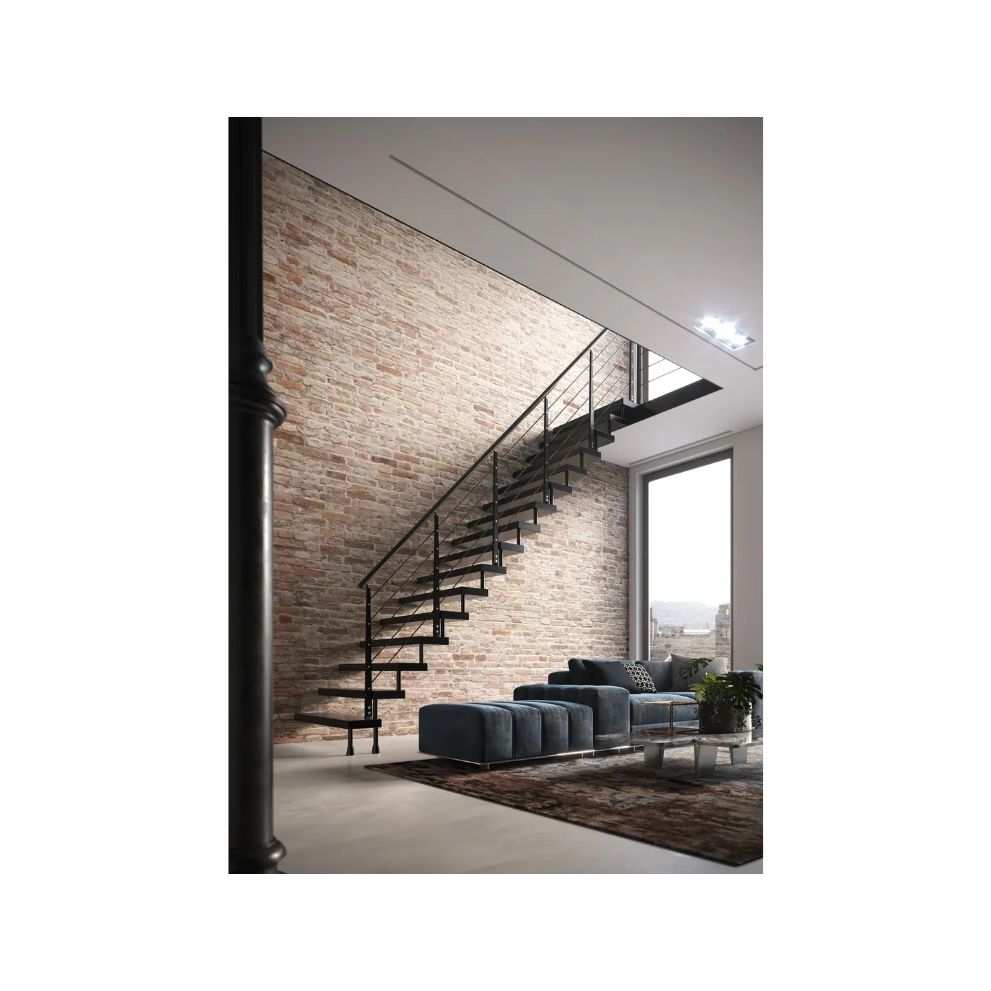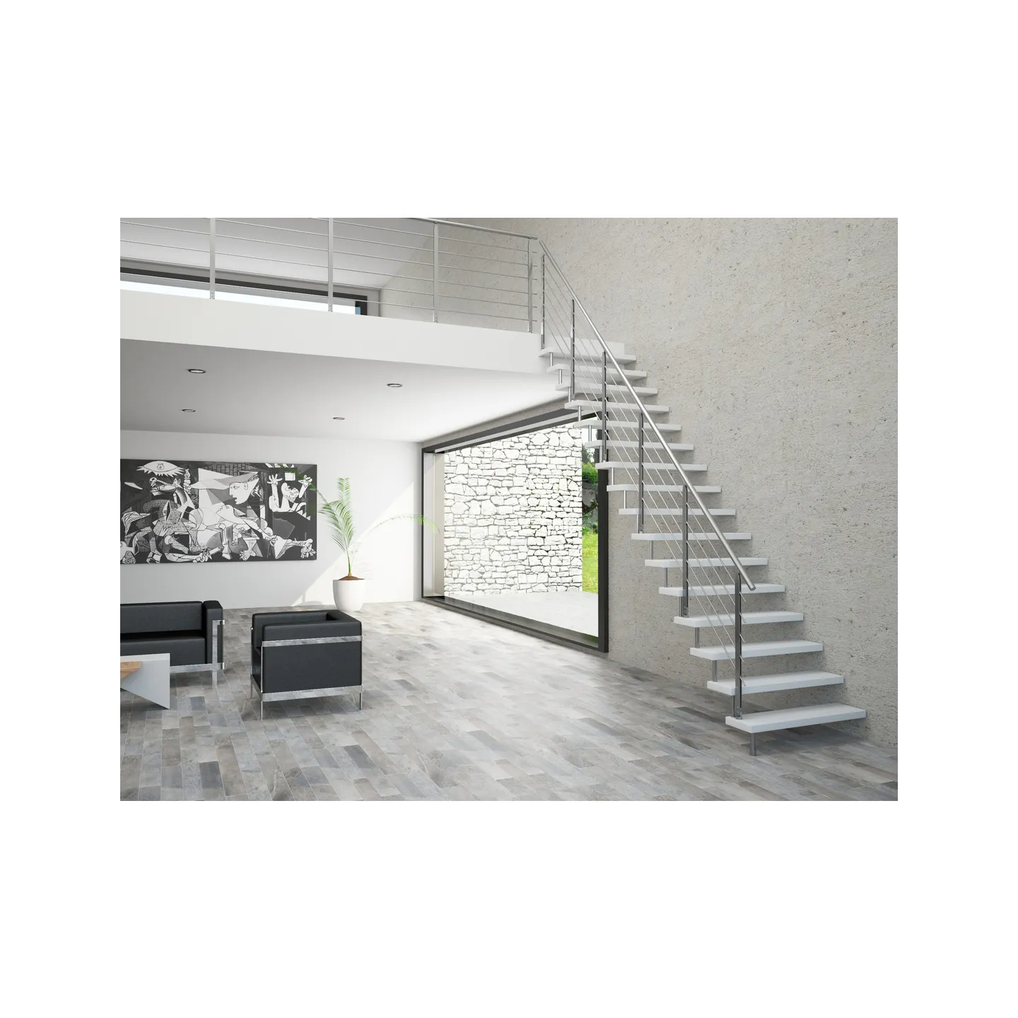 L'escalier suspendu ERIKA50 permet une adaptation totale à votre intérieur.