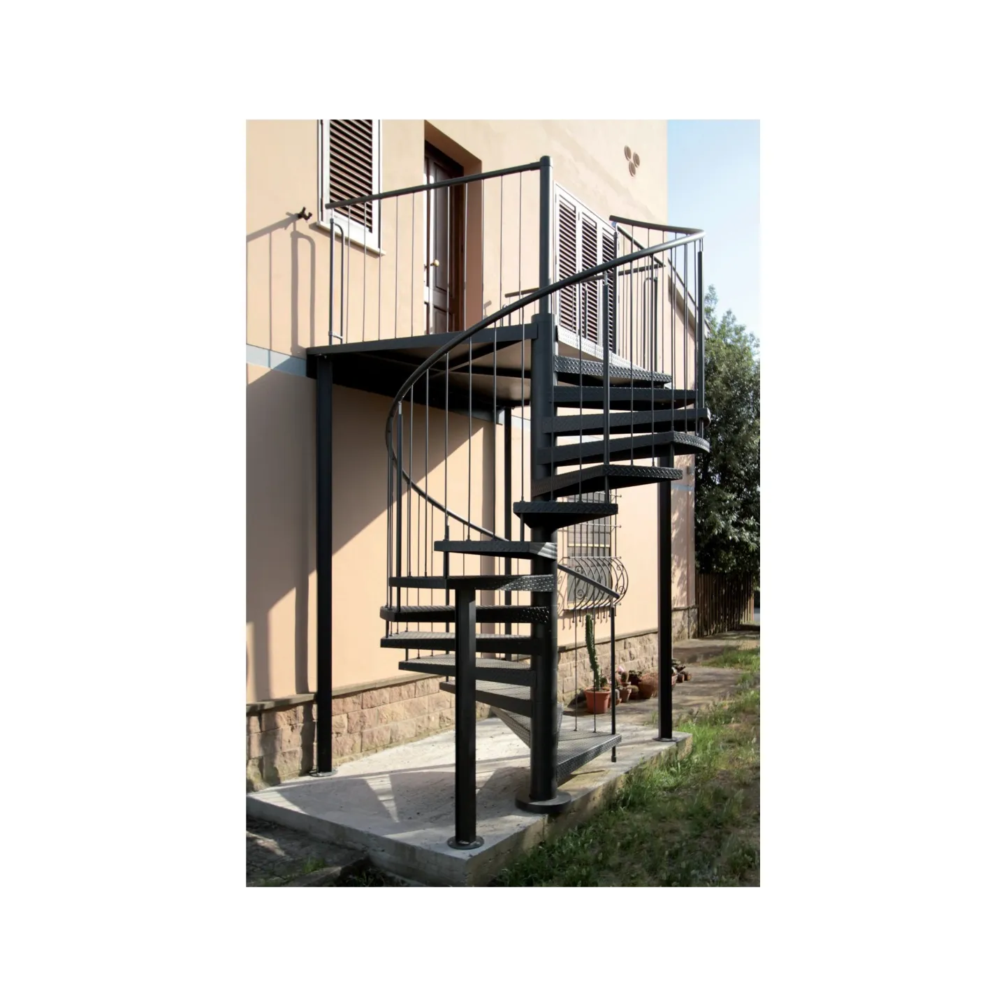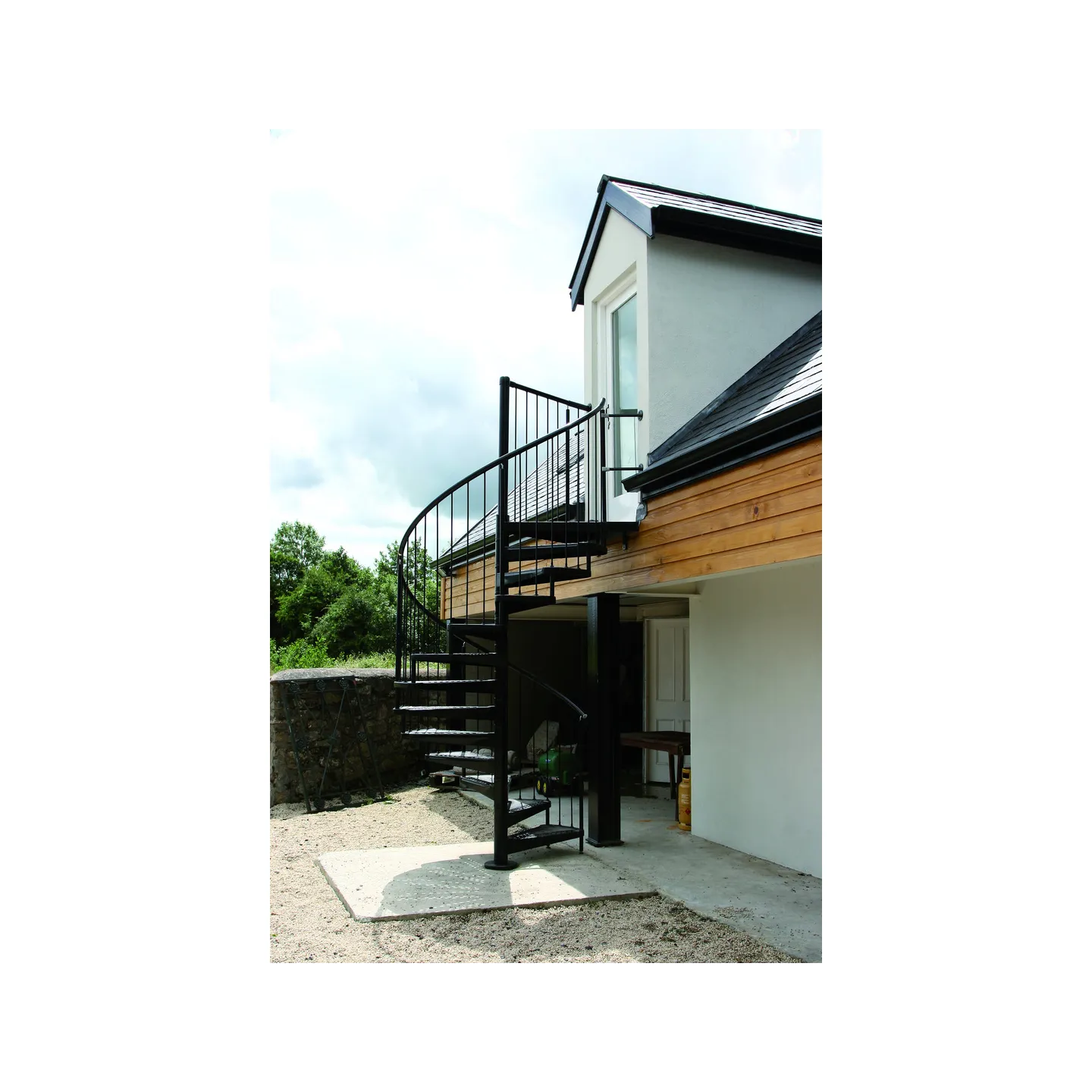 Escalier hélicoidal en acier pour équiper l’extérieur d’une maison.