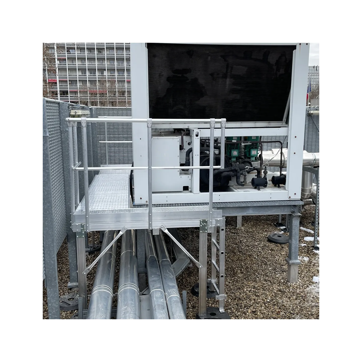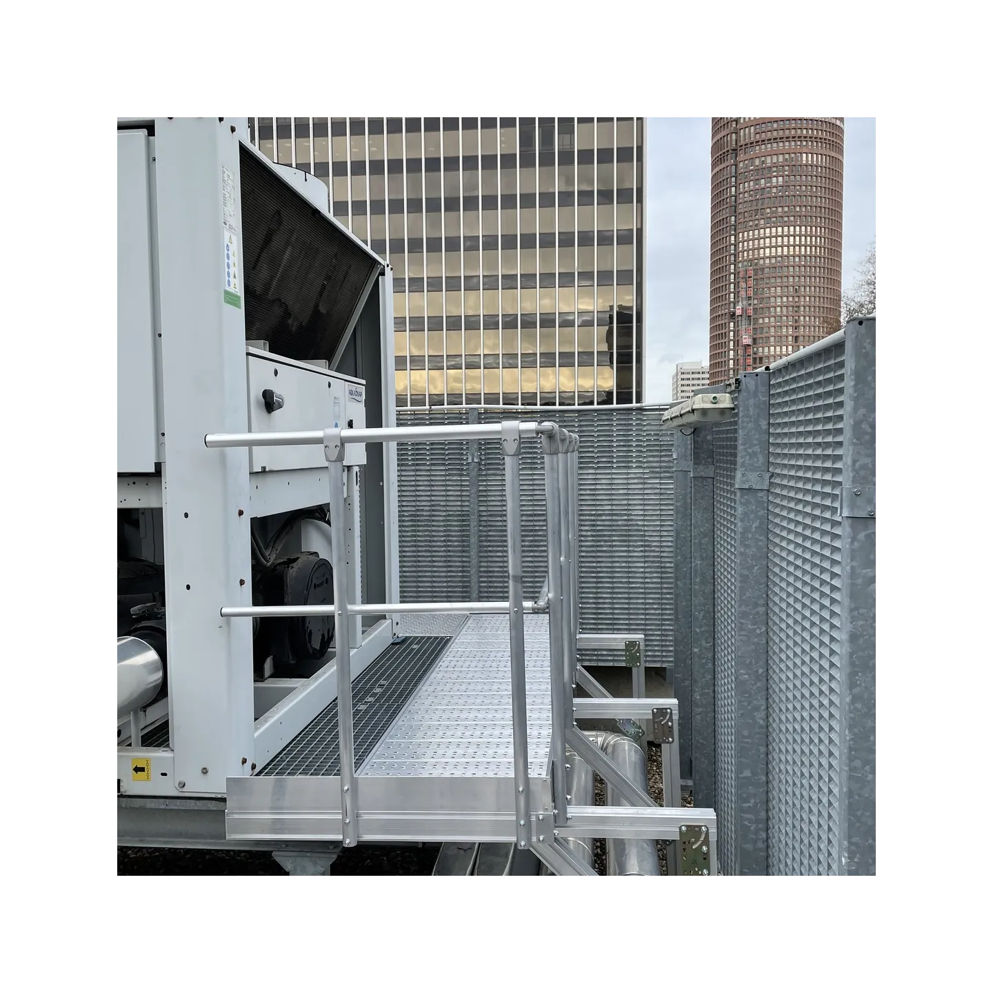 Pour effectuer les travaux quotidiens de maintenance et réparation des climatisations et système de chauffage de cette entreprise lyonnaise, les spécialistes de la hauteur ont fabriqué une passerelle sur-mesure de marque LEEVEL en prenant en compte toutes les contraintes d'espace et d'obstacles du chantier.
