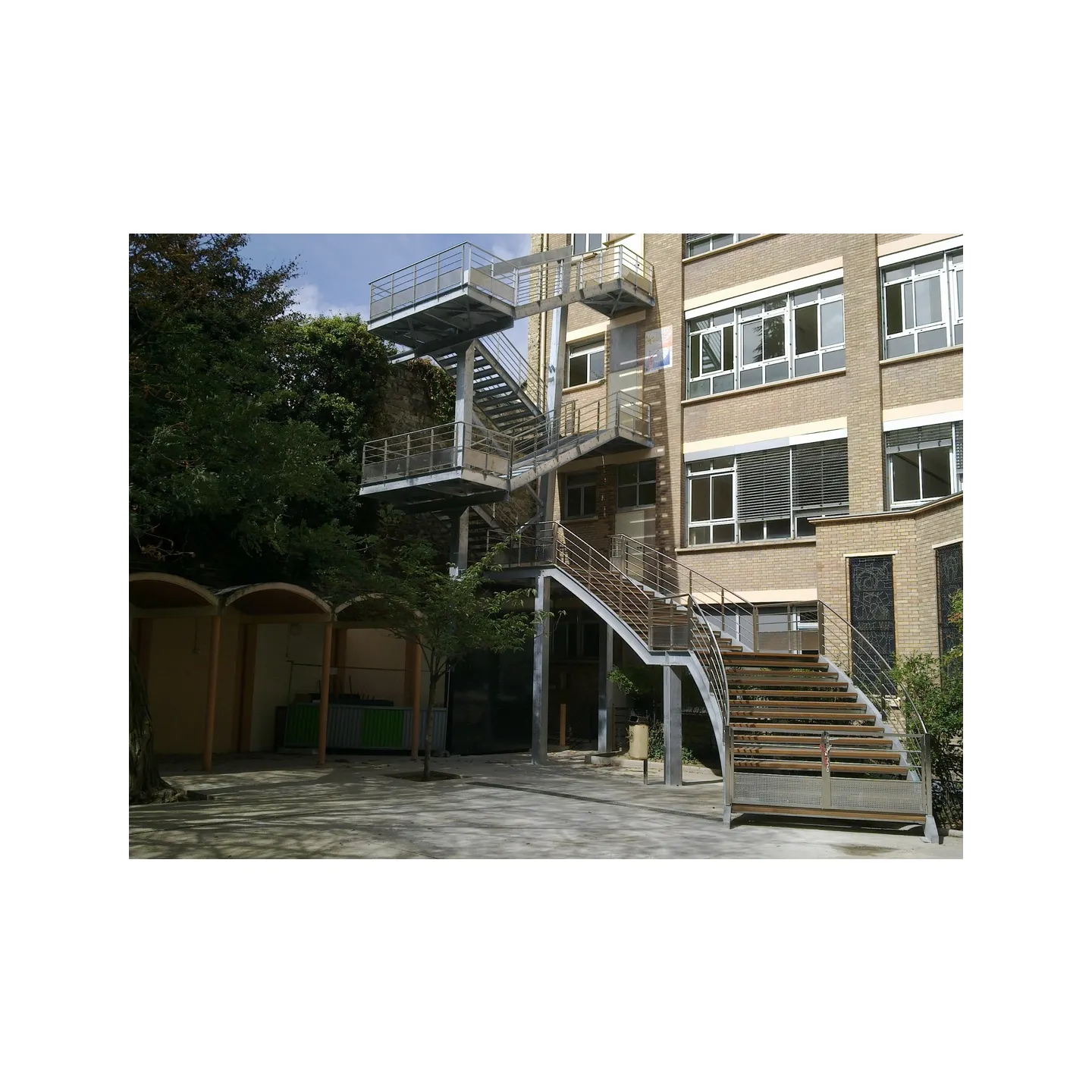 Cet escalier droit et 1/4 tournant extérieur permet d'accéder aux ERP jusqu'à 4 unités de passage, et possède 3 niveaux d'évacuation.