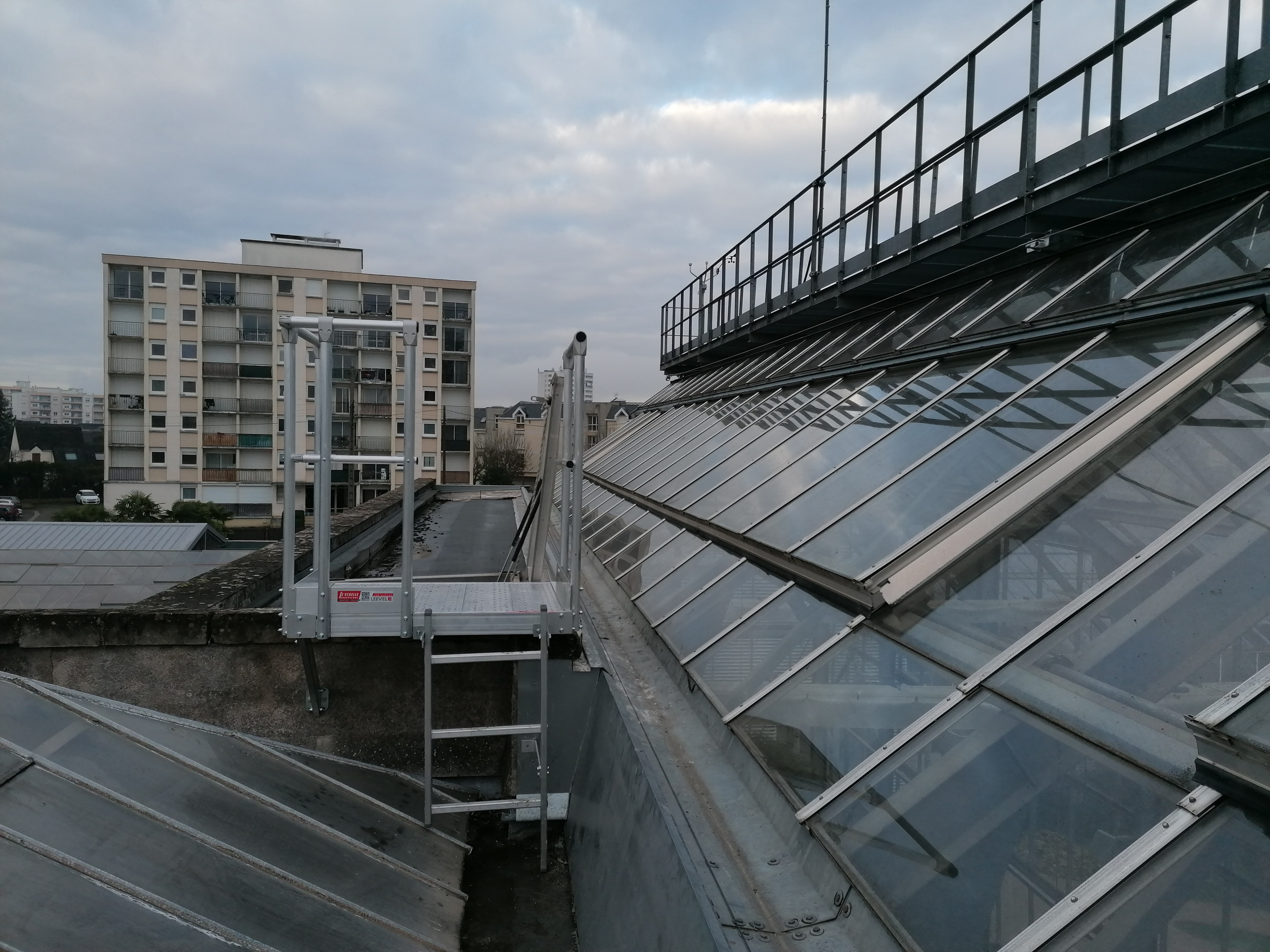 Voir le contenu - Pose de 3 potences reliées par une ligne de vie CONEKT à Angers