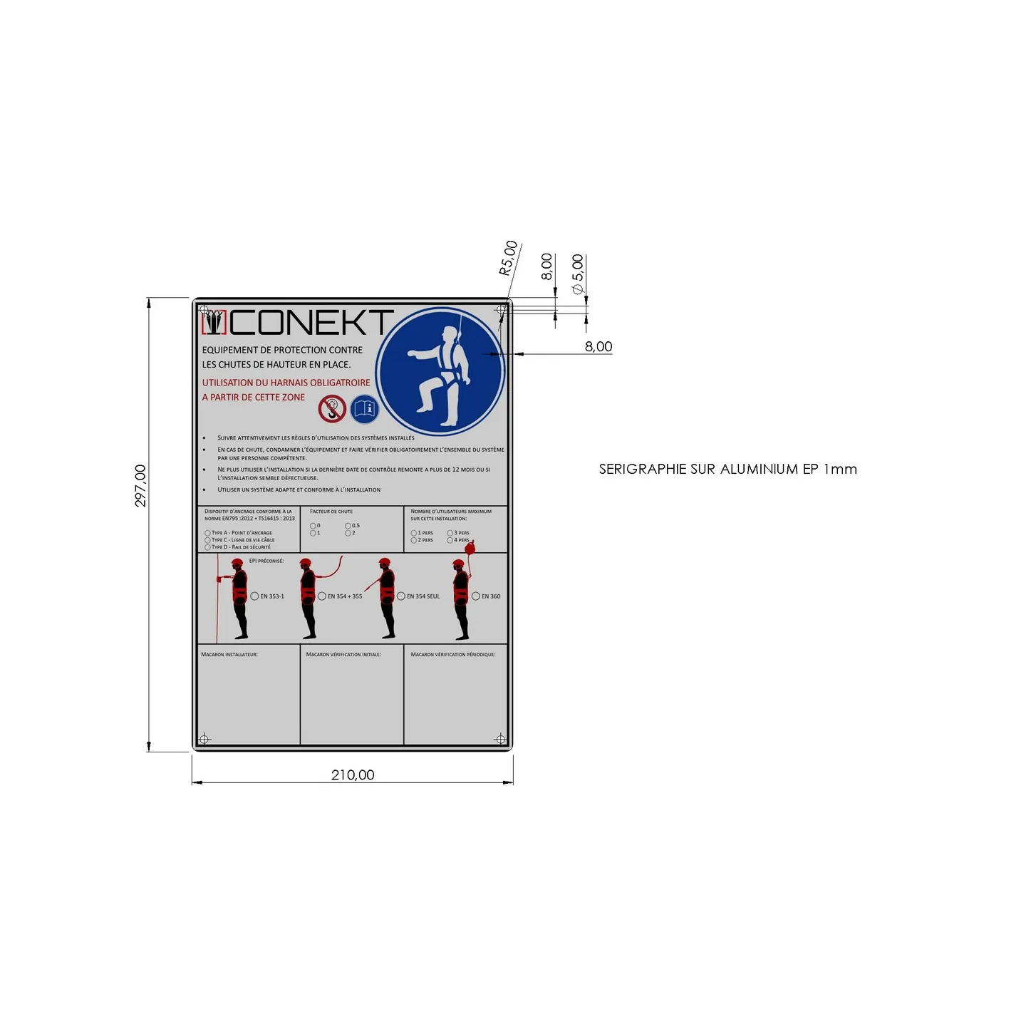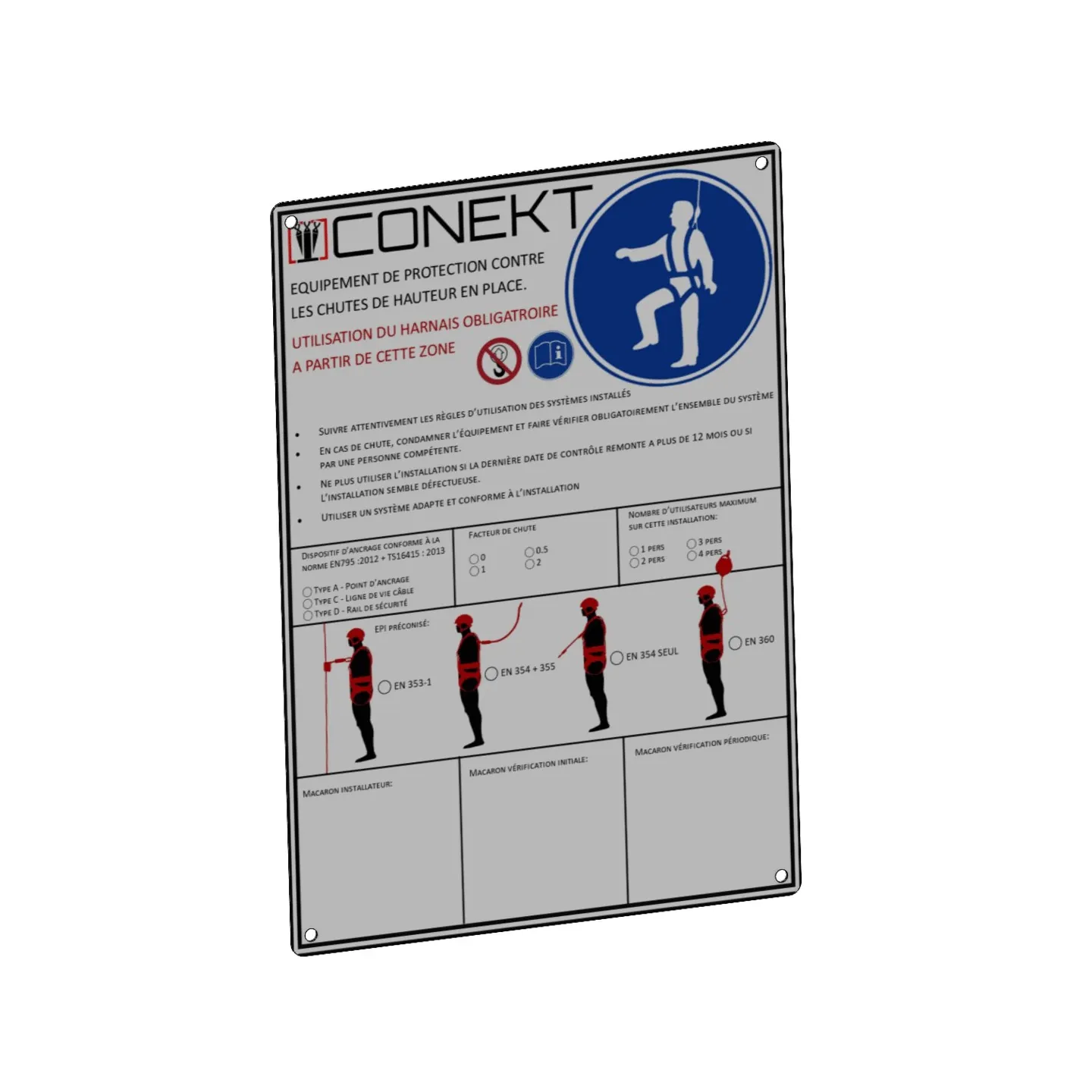 Panonceau en aluminium permettant de signaler la présence de système antichute NF EN 795.
