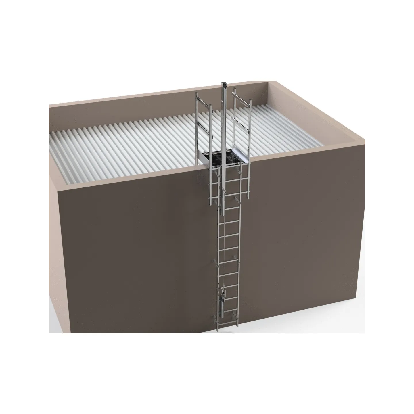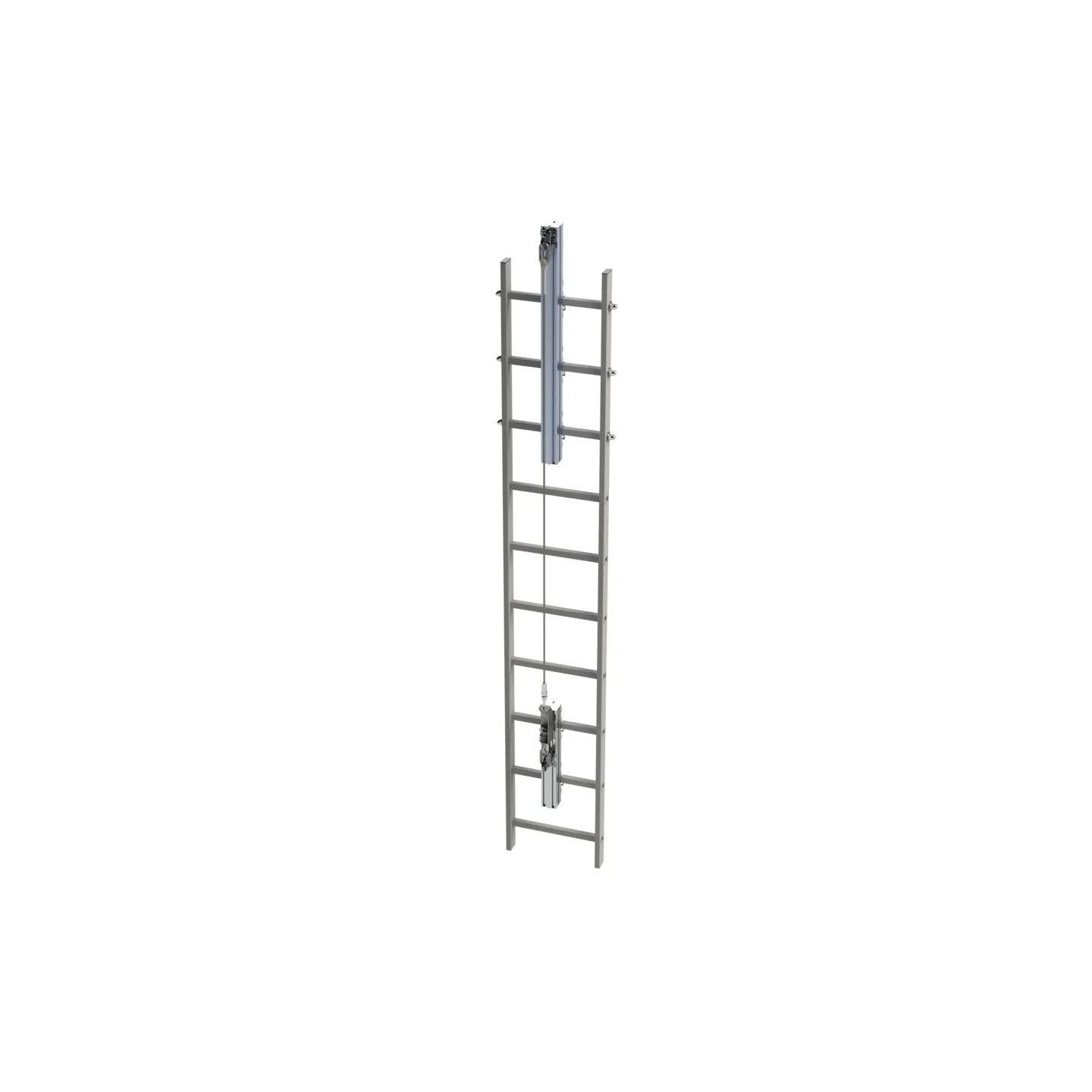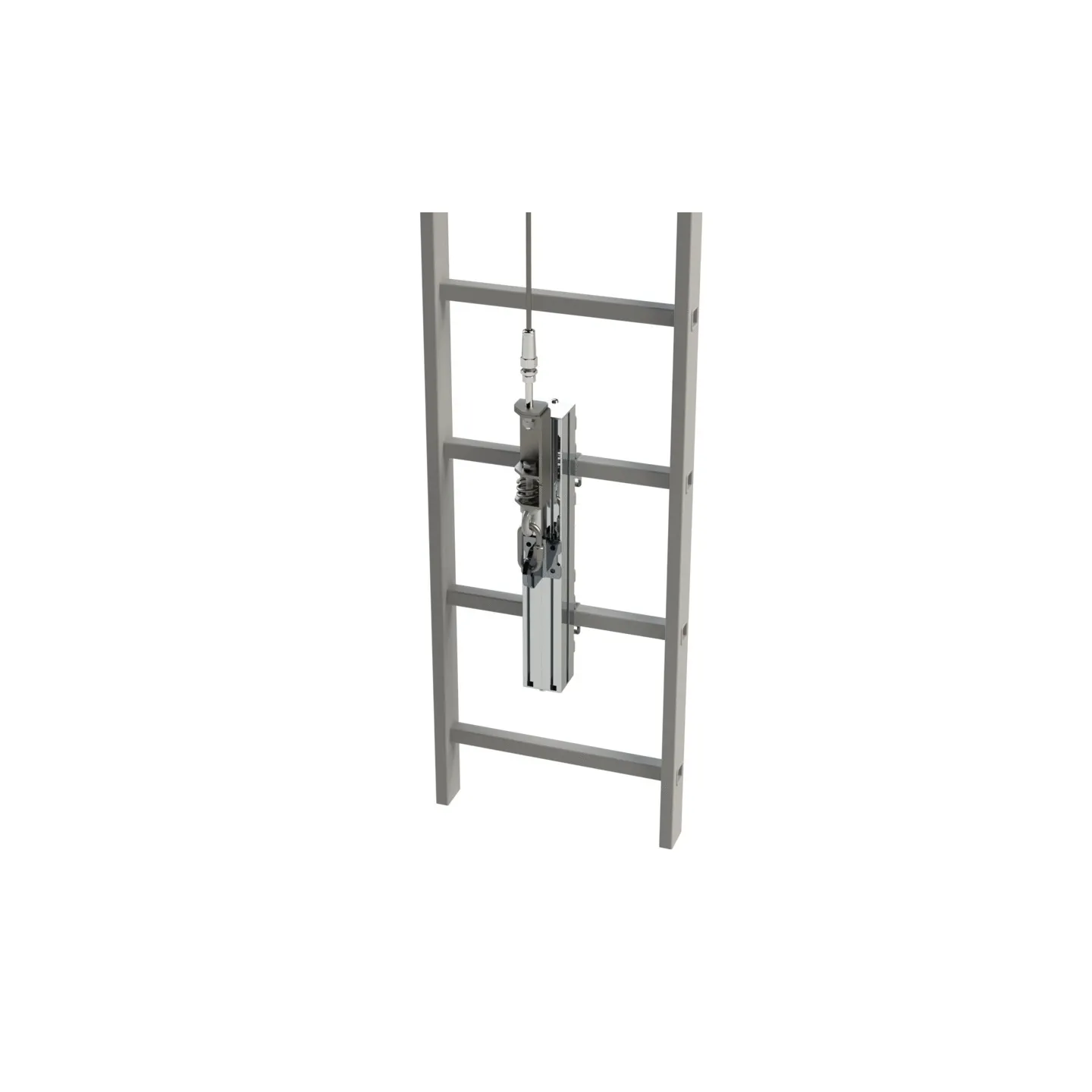 La ligne de vie est dissociée des interfaces, elle part d'un maillon rapide à un autre. La fixation sur l'échelle se fait entre 2 points d'ancrage de Type A.