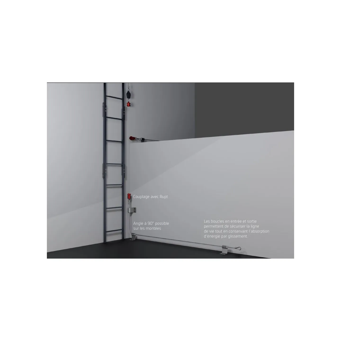 La garantie que les opérateurs restent connectés en permanence à la ligne de vie. La possibilité d’évoluer sur des pentes supérieures à 15°. Une facilité d’installation avec peu d’outillage. Une utilisation jusqu'à 5 personnes en simultané.