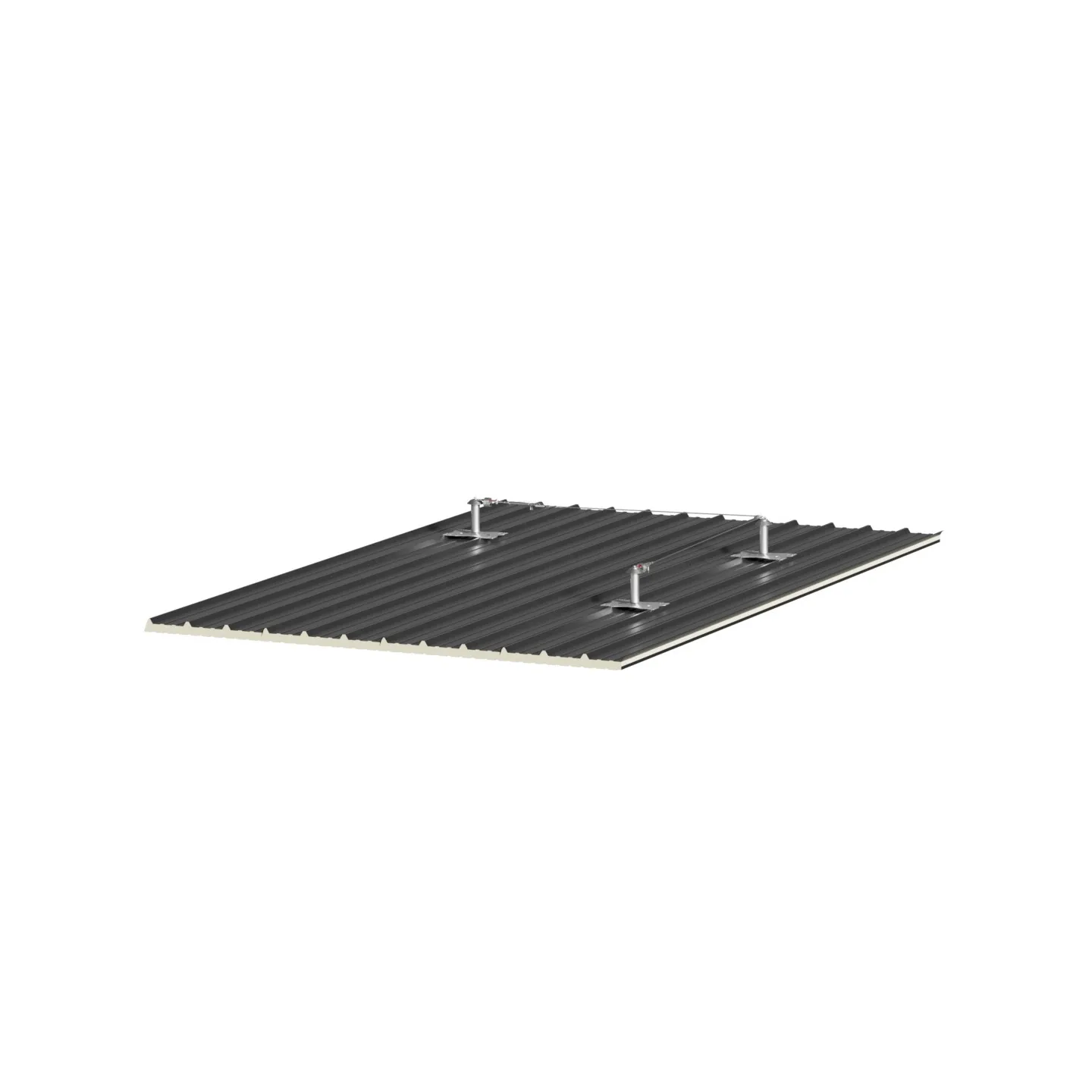 L'installation d'une ligne de vie à câble manuelle CONEKT CLASSIC sur panneau sandwich se fait par l'intermédiaire de la platine PB2 ou MINI OMEGA sur laquelle il est nécessaire de rajouter une rehausse RH100 ou poteau basculant PB250.