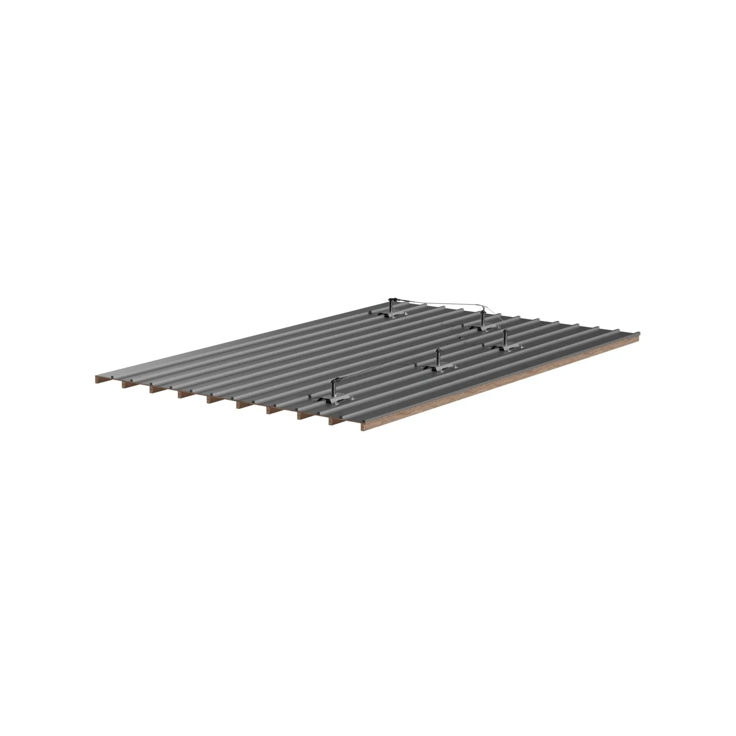 L'installation d'une ligne de vie à câble CONEKT sur volige zinc se fait par l'intermédiaire ,de la platine ICZ spécialement conçue pour ce type de support. , Il est possible de rajouter une rehausse diabolo AD ou poteau basculant PB250 si nécessaire.