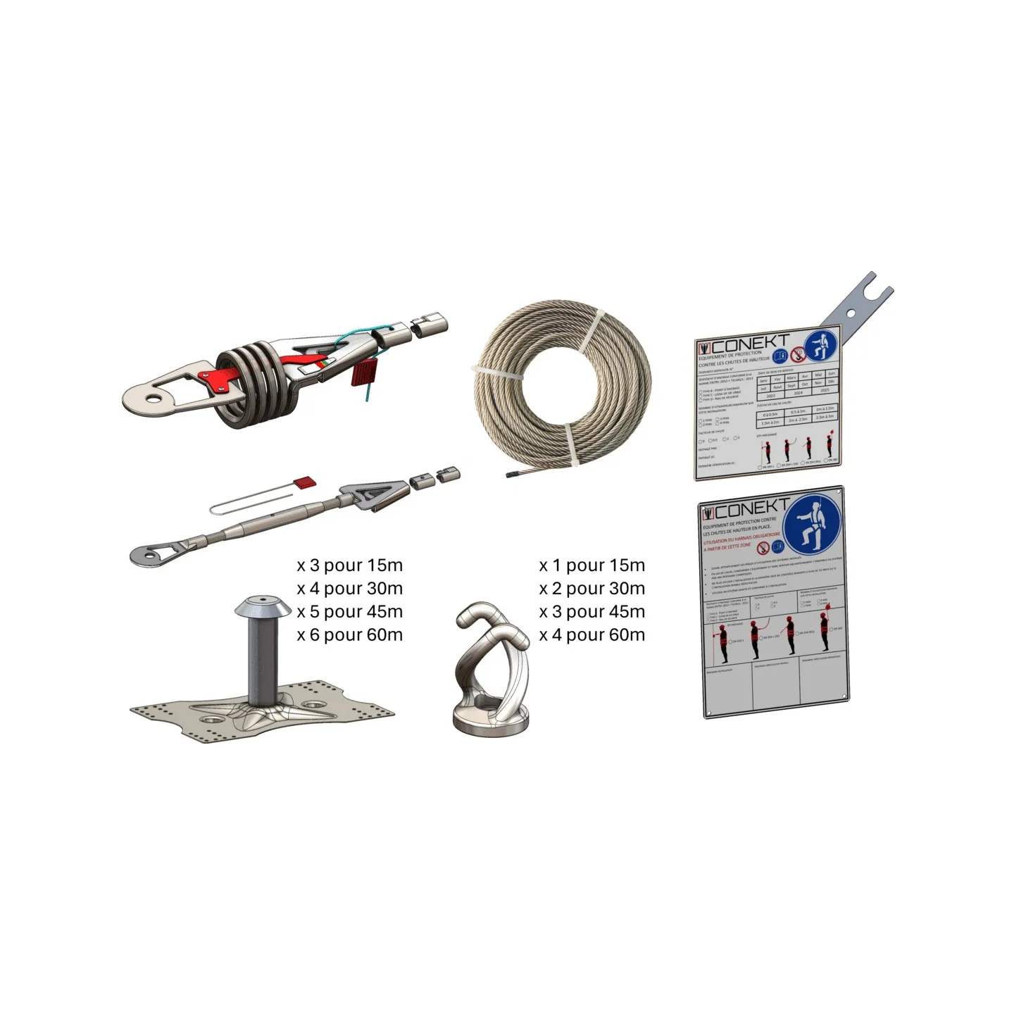 Voir le détail - Ligne de vie à câble manuelle sur bac étanché CONEKT CLASSICLigne de vie à câble manuelle sur bac étanché CONEKT CLASSIC