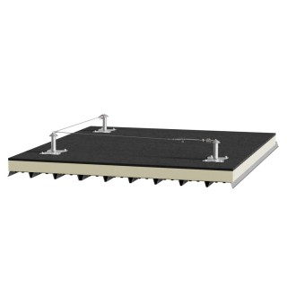 L'installation d'une ligne de vie à câble CONEKT sur bac étanché se fait par l'intermédiaire de la platine PB2 ou PB4 sur laquelle il est nécessaire de rajouter un poteau basculant PB250.