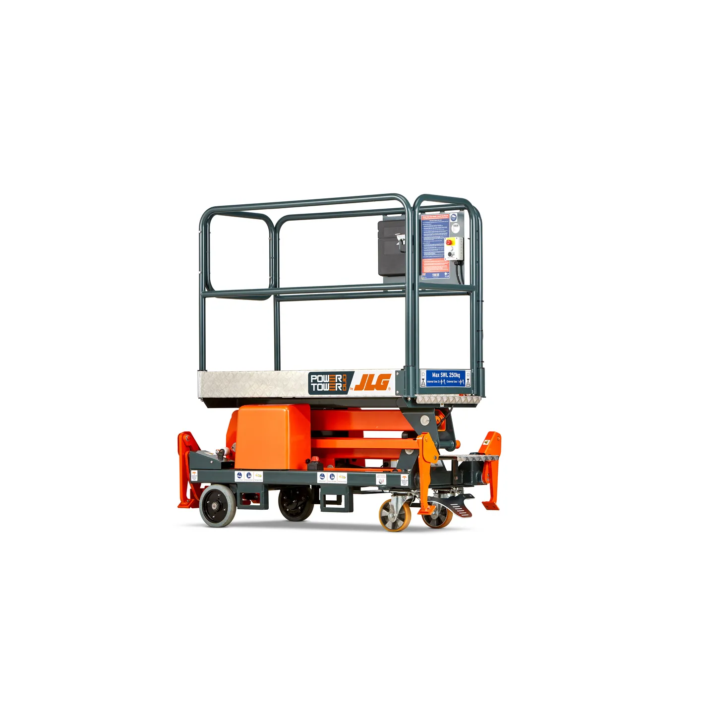 Sa large surface de travail, ses stabilisateurs brevetés et ses freins autobloquants garantissent sécurité et stabilité.