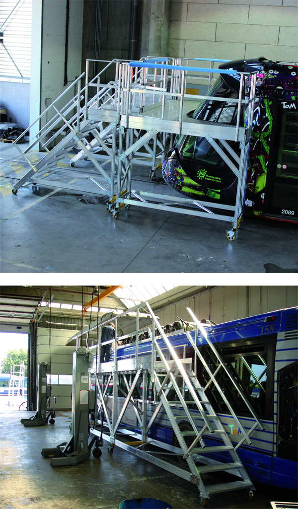 De plus, les solutions d’accès standard pour la maintenance ne sont bien souvent pas adaptées à ces situations et environnements. Selon le type et le modèle, les véhicules varient considérablement en taille et en forme. C’est pourquoi les secteurs du transport en camion, train ou avion nécessitent des solutions d’accès flexibles et adaptées.