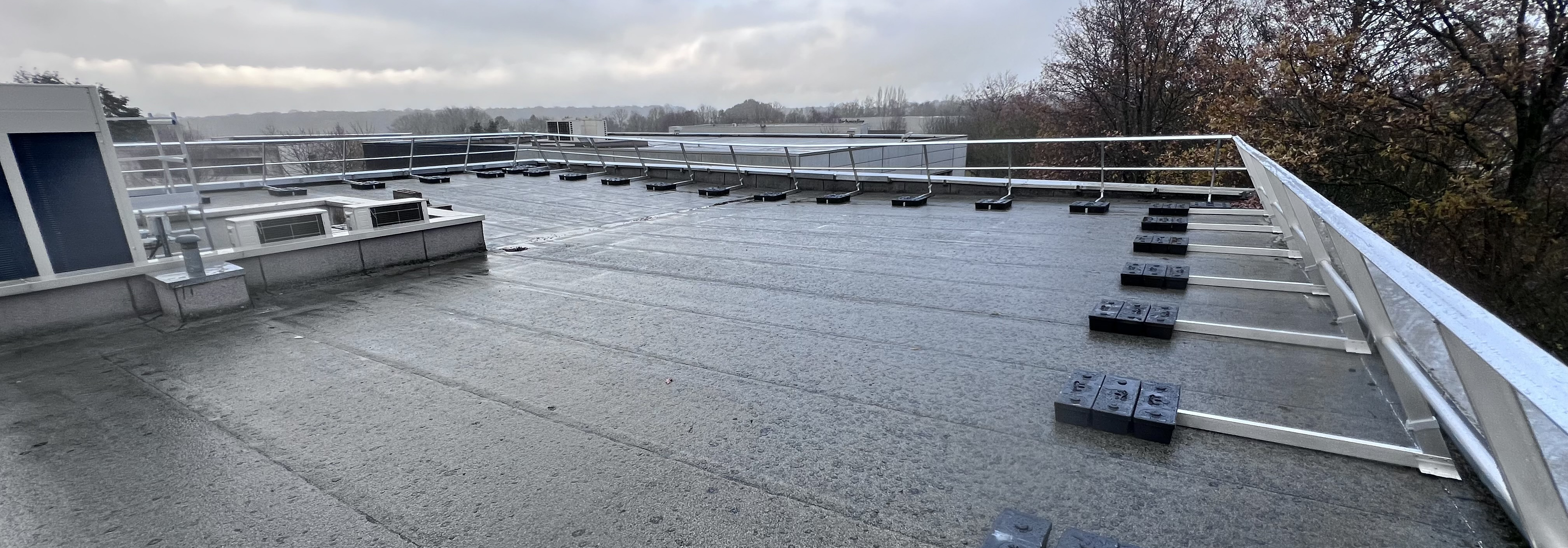 Nous assurons la mise en conformité globale des toitures, passerelles, accès machines, chemins de circulation, zones de maintenance. Notre objectif est de sécuriser durablement les interventions de vos équipes internes et de vos prestataires externes.