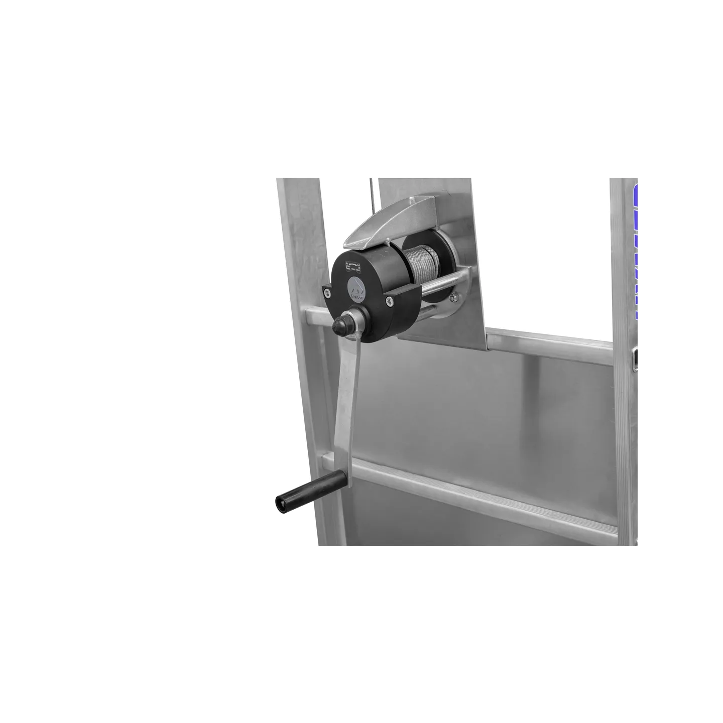 Grâce au treuil intégré, la hauteur de plate-forme peut être réglée facilement et rapidement plage de réglage de 130 mm.