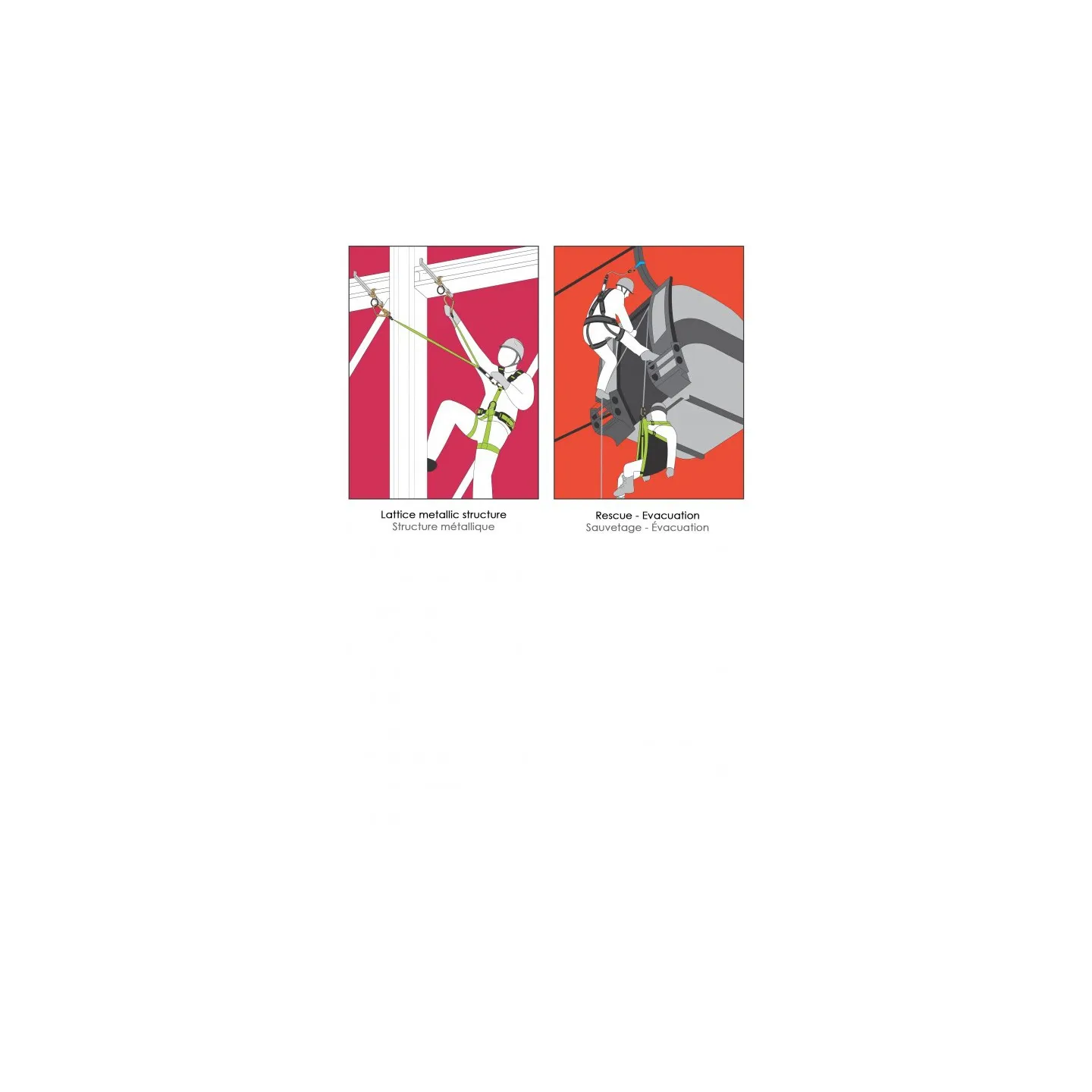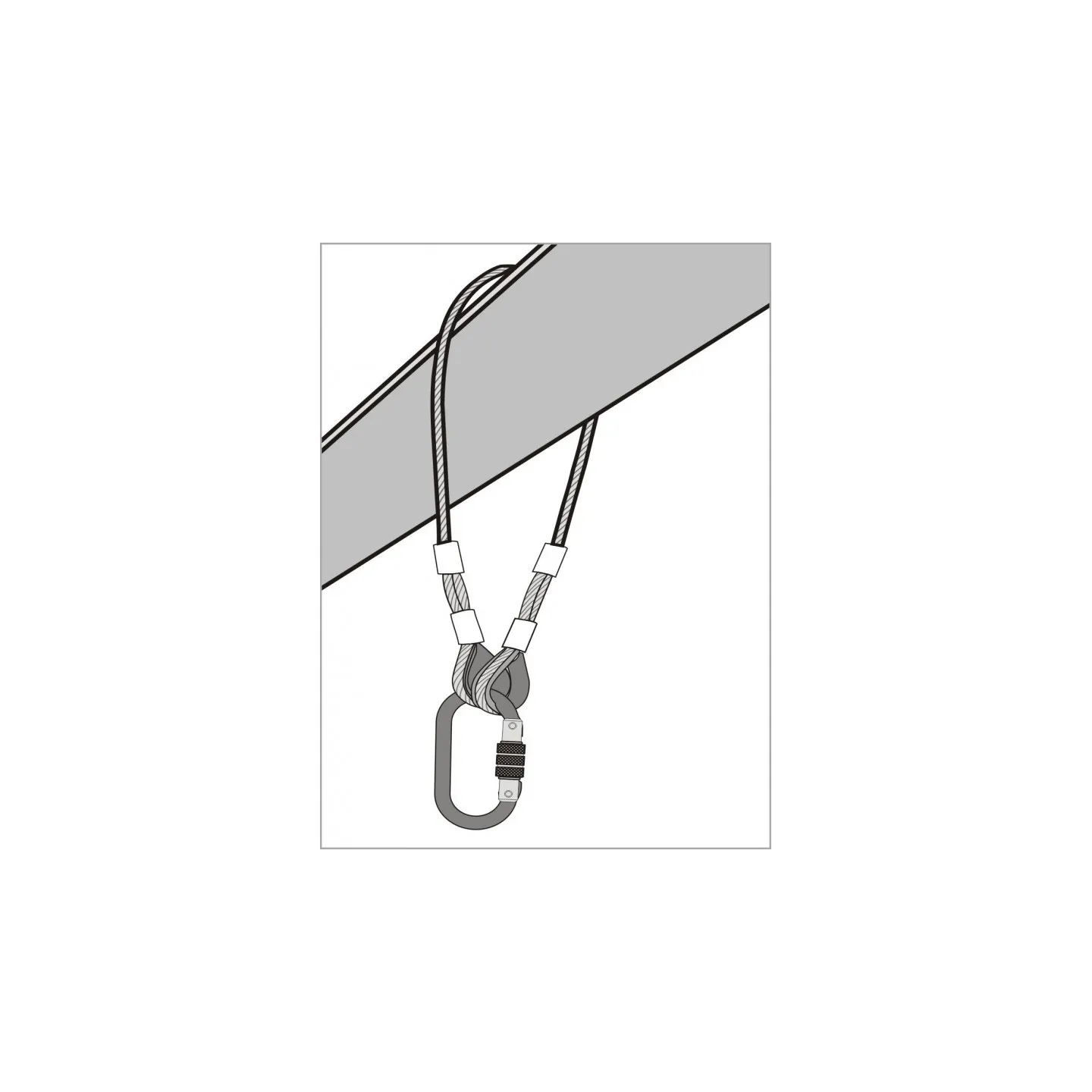 Chaque extrémité est terminée par une boucle sertie avec cosse métallique, garantissant un maintien optimal et une connexion sécurisée aux dispositifs antichute.
