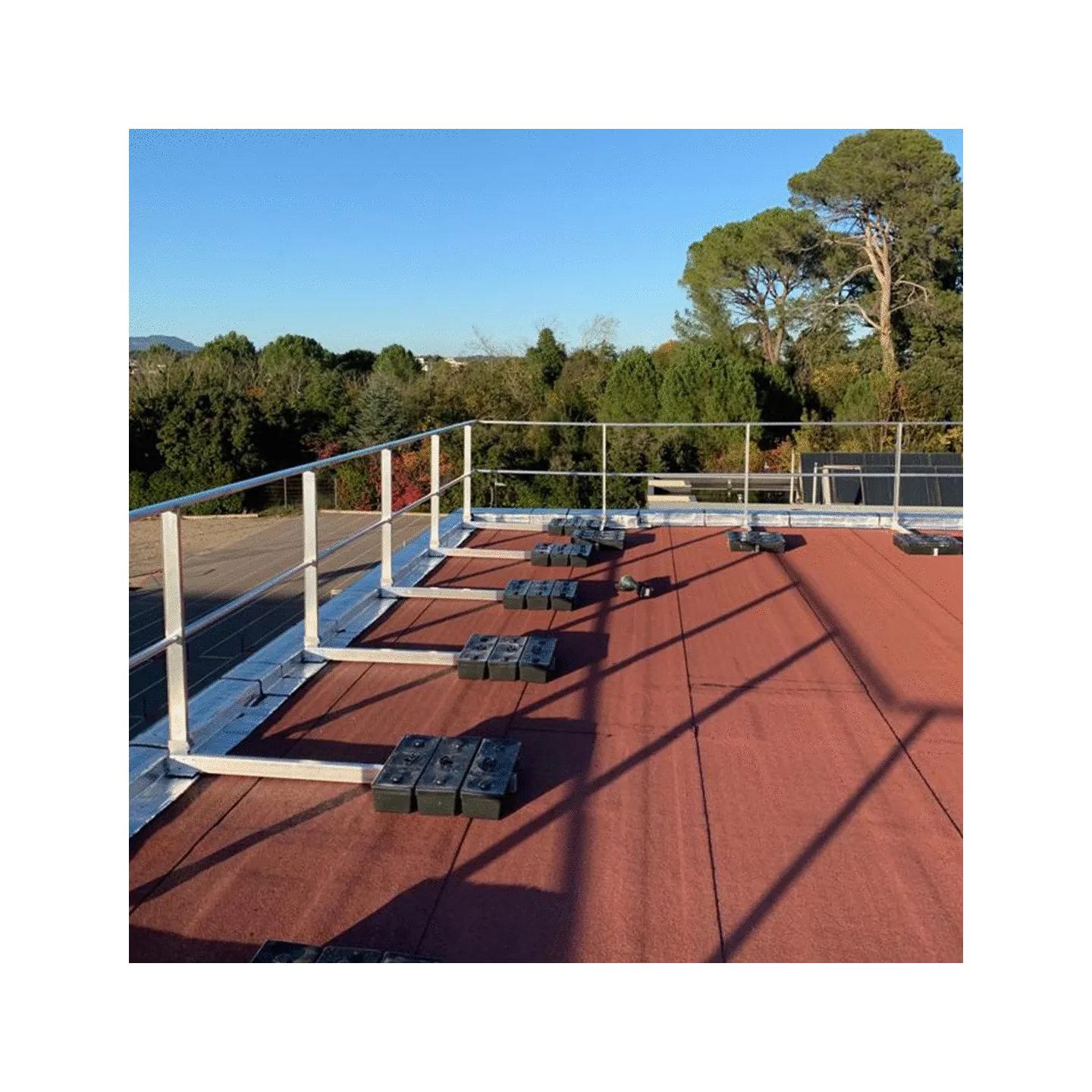 Les garde-corps autoportant sont des systèmes de protection collective antichute. Ils sont la solution idéale pour la mise en sécurité des terrasses techniques et des toitures non accessibles au public.