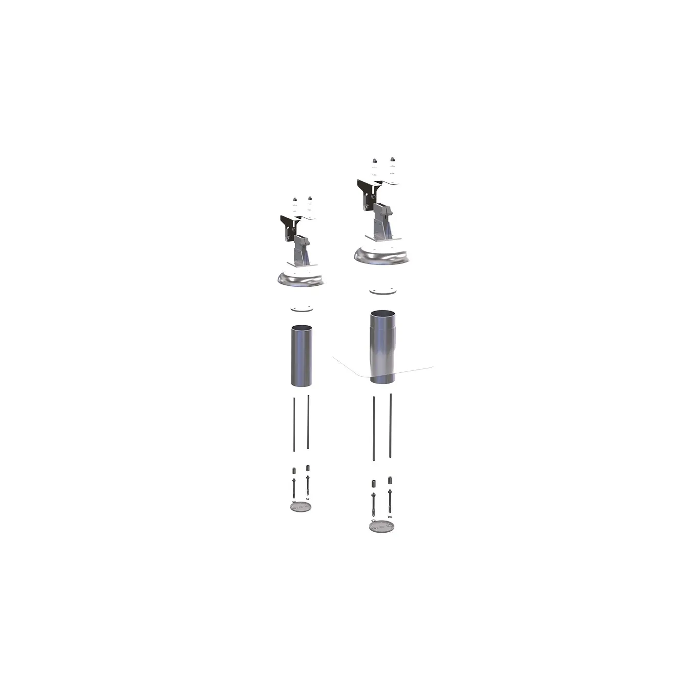 La conception du potelet permet une standardisation grâce à l'utilisation de la collerette réglable en hauteur.