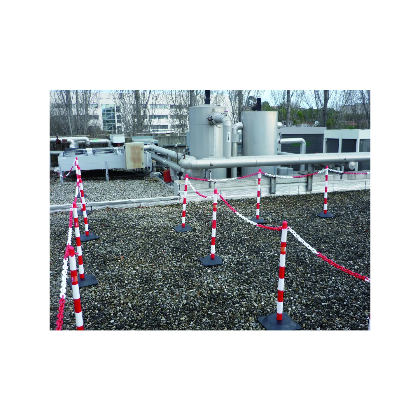 Gamme de potelets et chaînettes pour balisage de chemin de toiture terrasse.