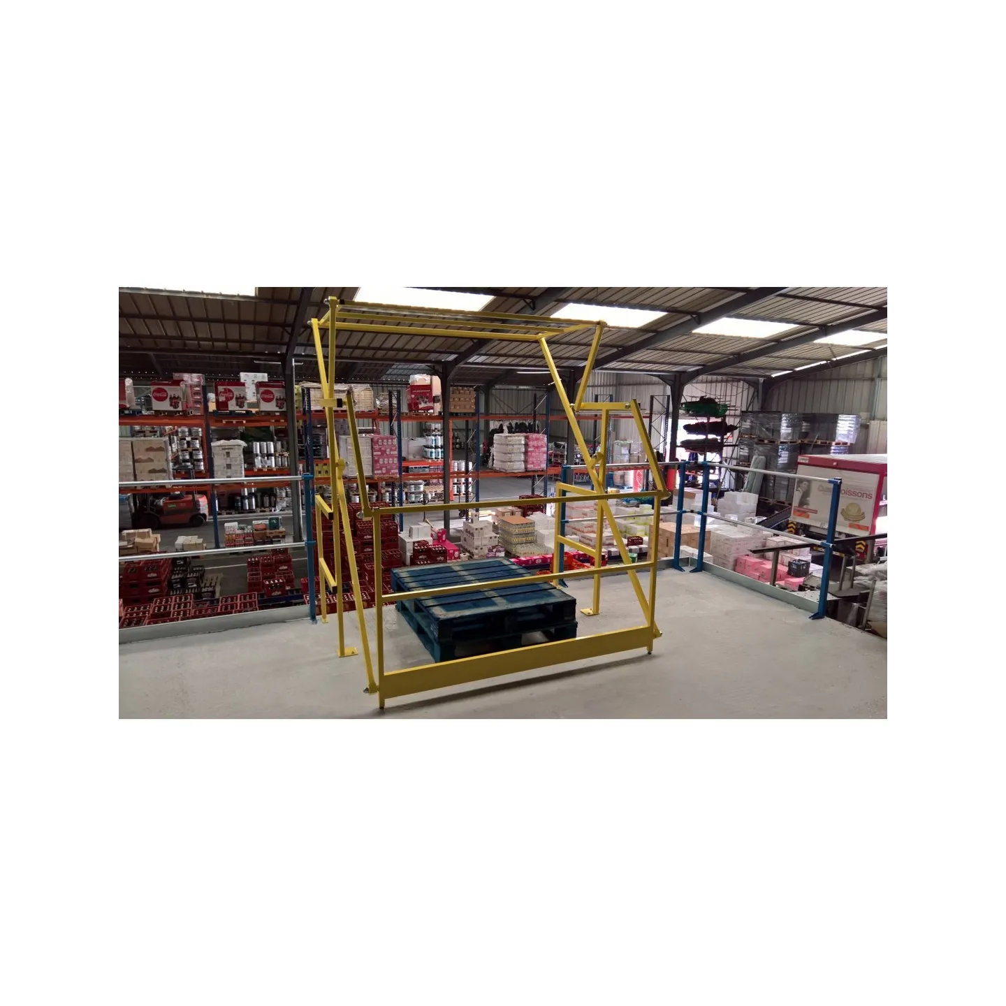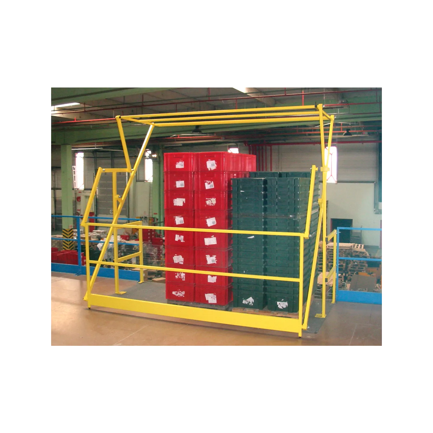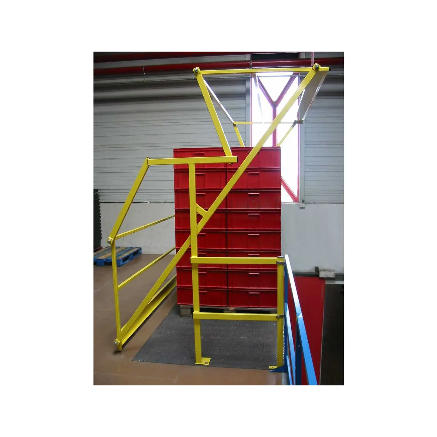 Les barrière écluse type sas à volet permettent de sécuriser les zones de transfert de marchandises entre niveaux en assurant la continuité des garde-corps.